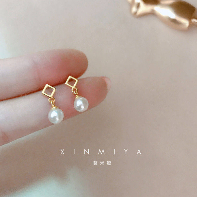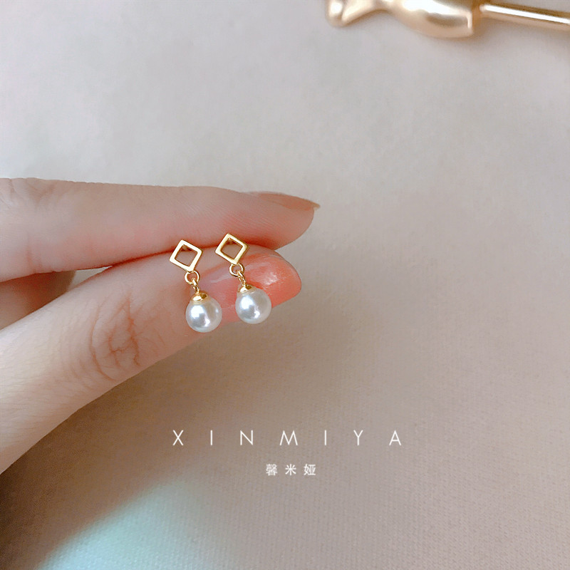 2025高级感法式几何复古耳环女小众设计方形珍珠耳钉轻奢气质耳坠