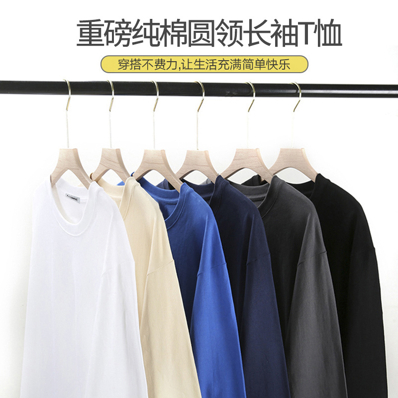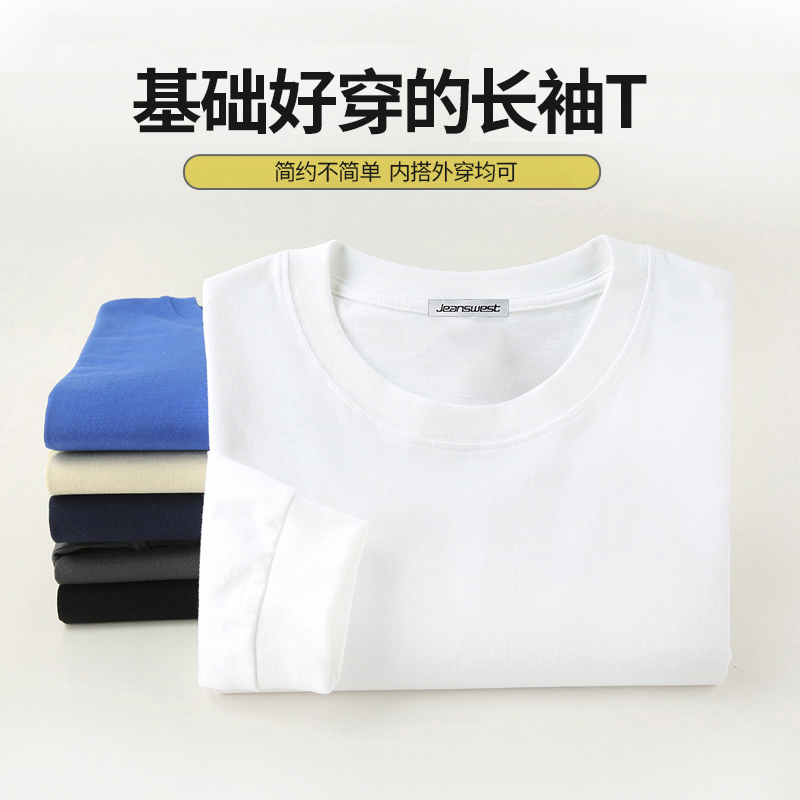 NG真维斯重磅纯棉束口长袖T恤男女2025春秋款休闲百搭打底衫上衣