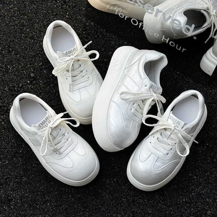 时尚厚底真皮板鞋女2025春秋新款小个子5cm休闲百搭娃娃头松糕鞋