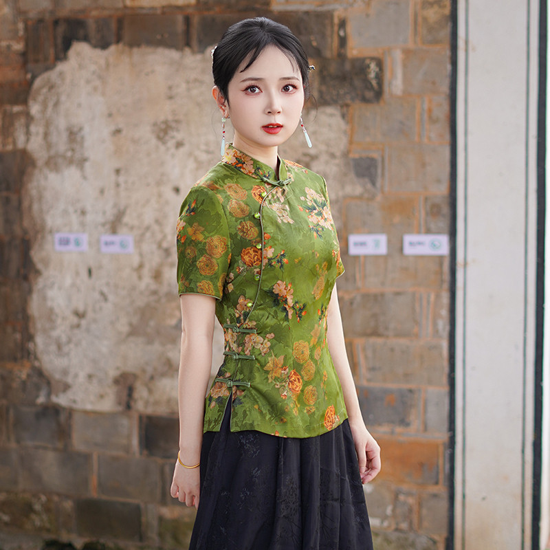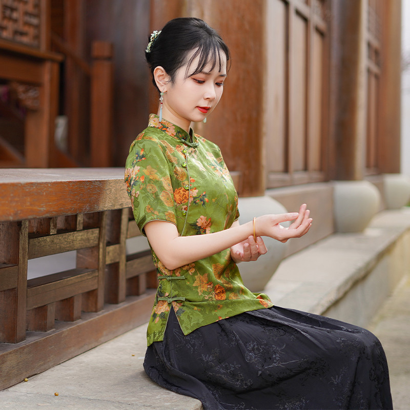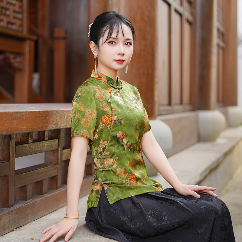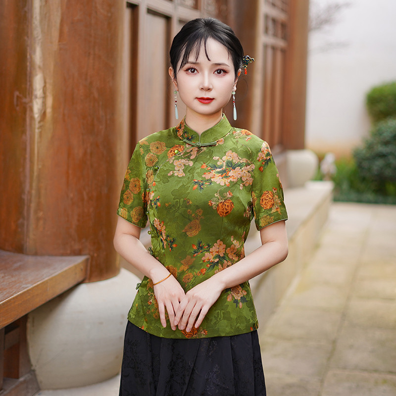 筠雅夏季新款中国风唐装上衣修身显瘦气质年轻款新中式女装25J138