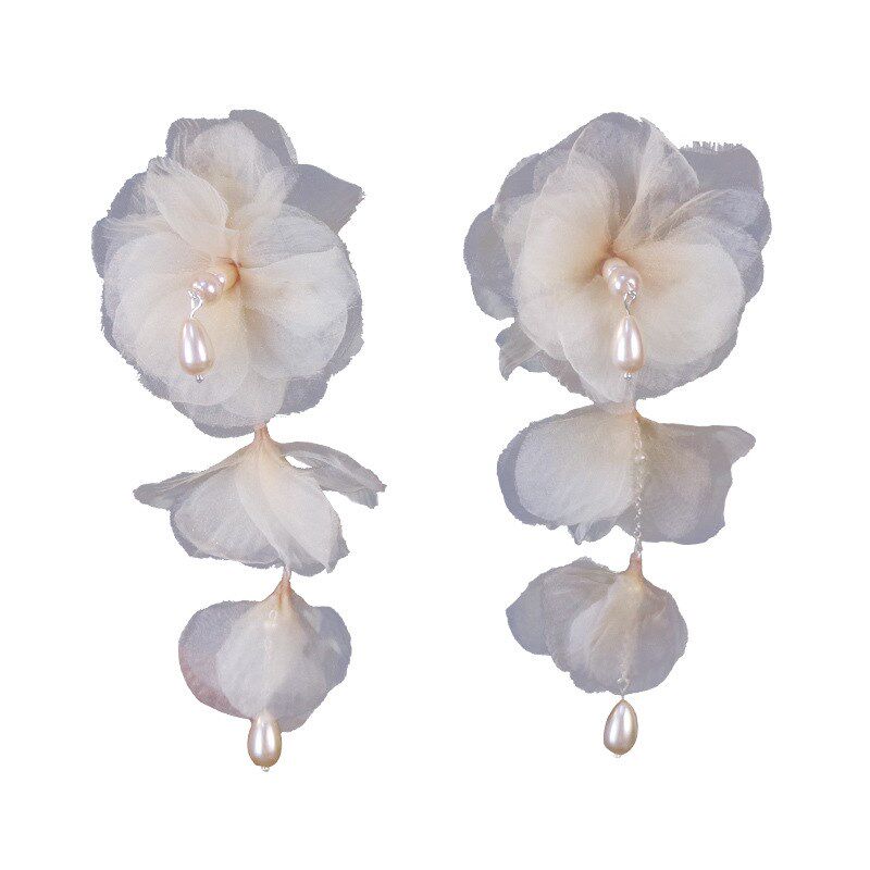 新款精致花朵串珠耳夹珍珠耳饰新娘结婚缎玫瑰花婚纱礼服写真饰品