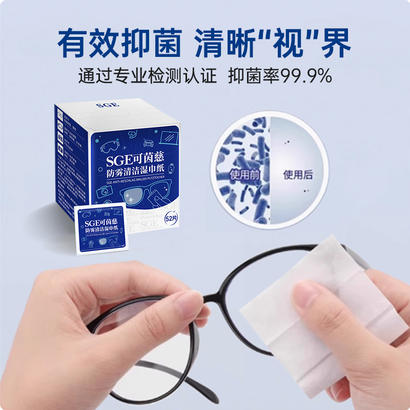 SGE可茵慈擦镜纸眼镜清洁湿巾防雾独立小包装眼镜防起雾