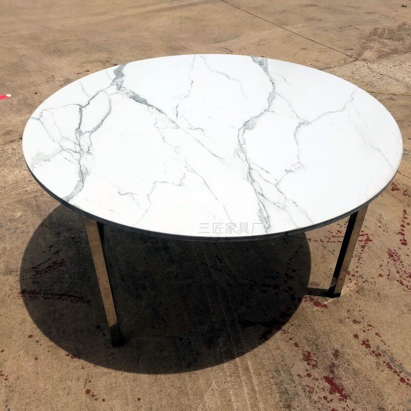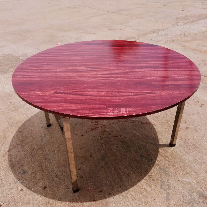石纹木纹不d锈钢餐桌转盘圆桌火锅桌家宴饭店户外折叠收纳免安装
