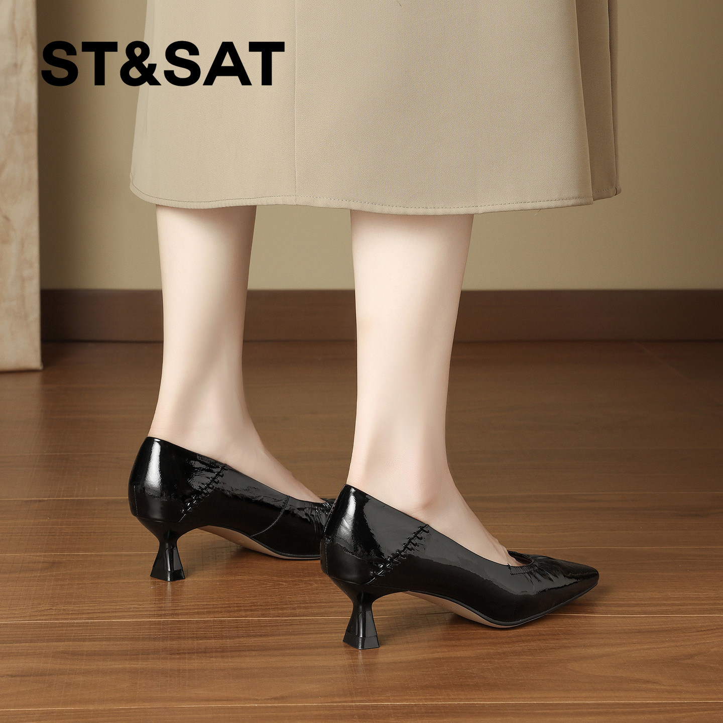 星期六浅口单鞋女2026春季新款尖头小猫跟不累脚真皮高跟鞋工作鞋