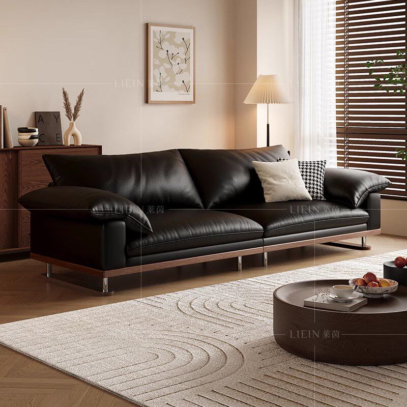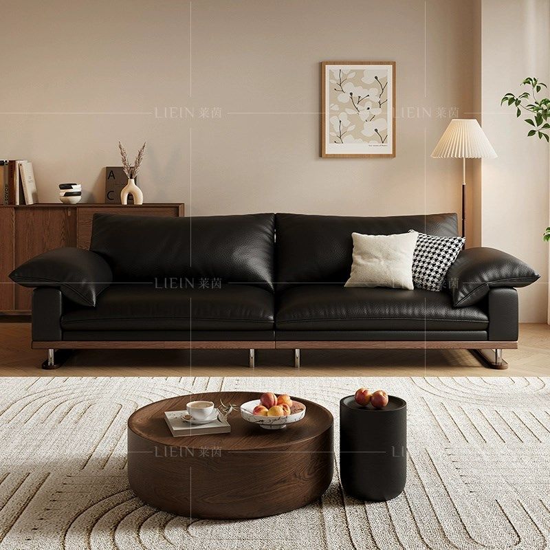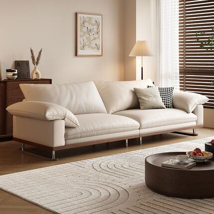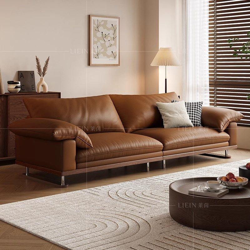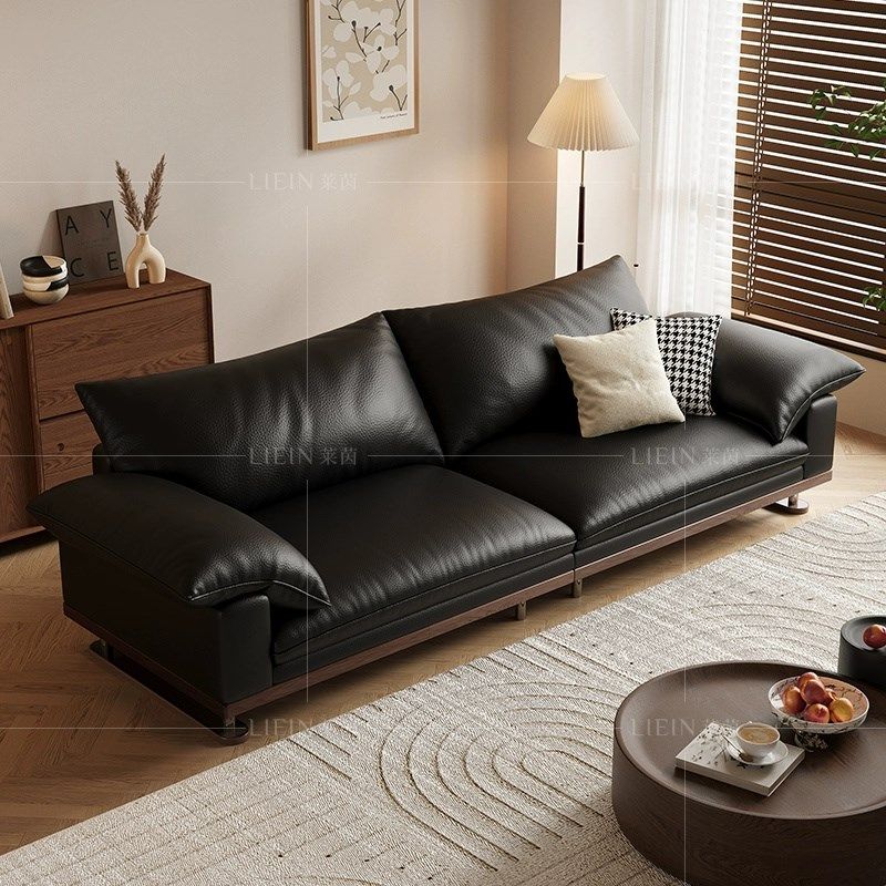 日式奶油风头层真皮沙发客厅小户型极简约现代实木豆腐块皮艺沙发
