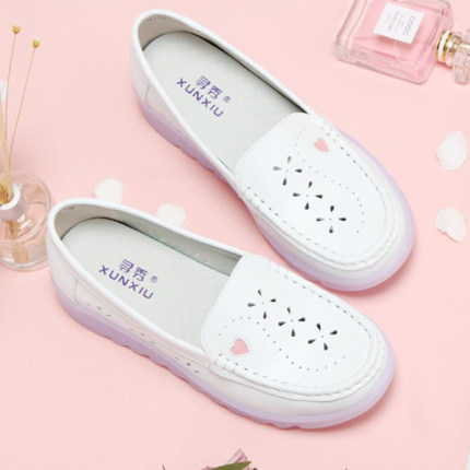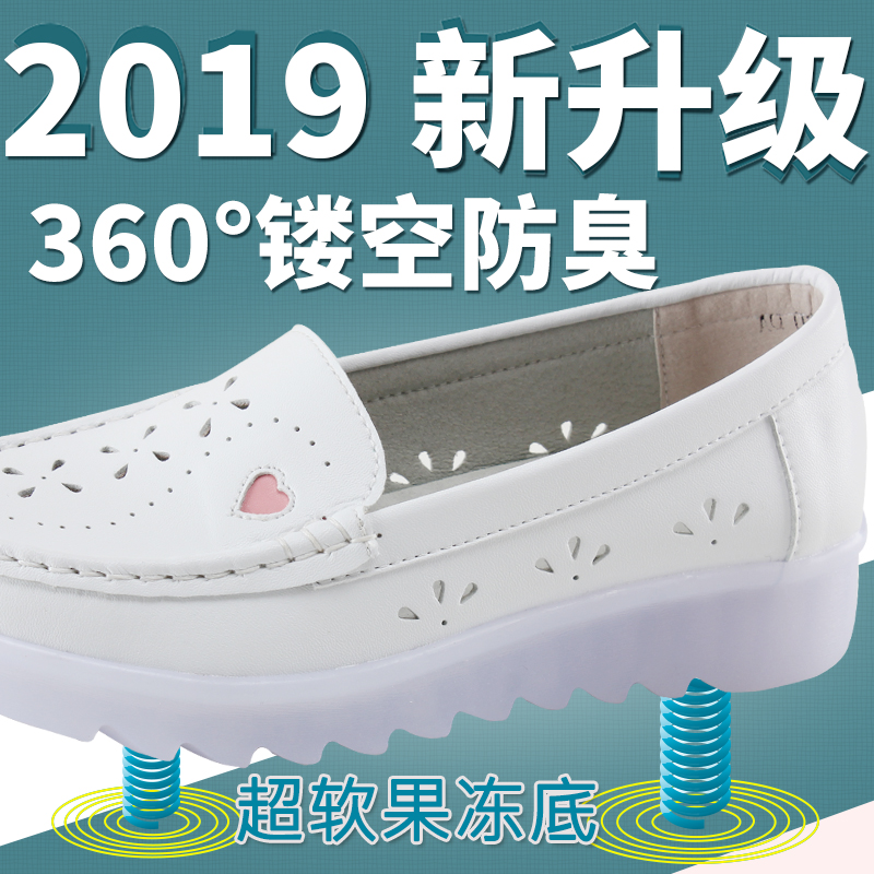 夏季镂空白色护士鞋女透气软底平底舒适坡跟小白凉鞋女春秋款