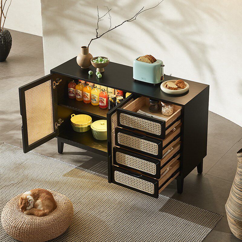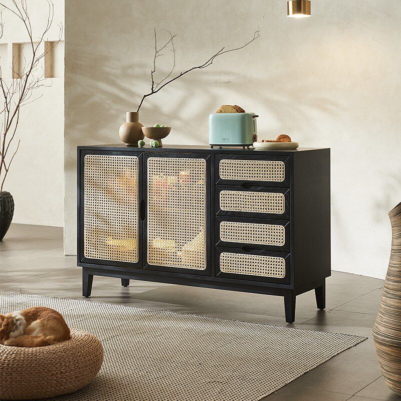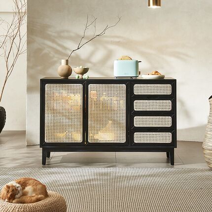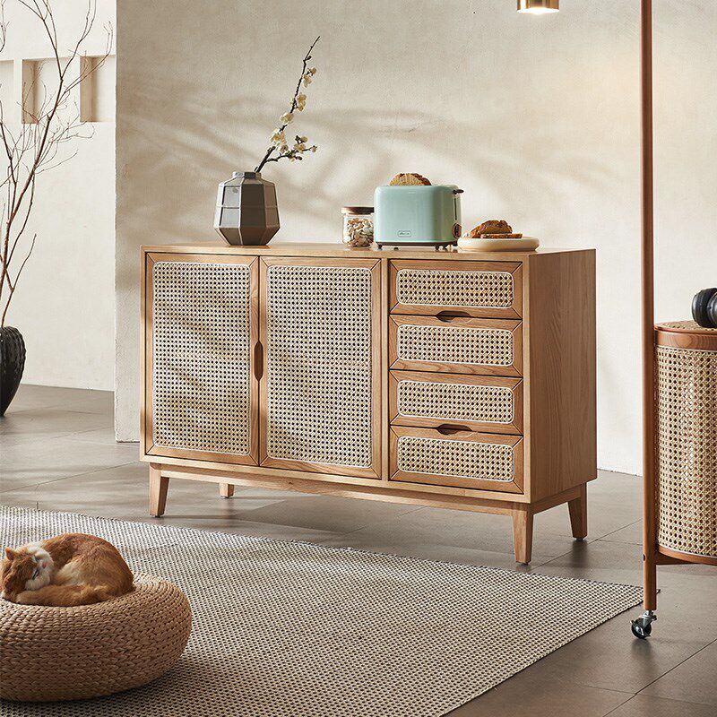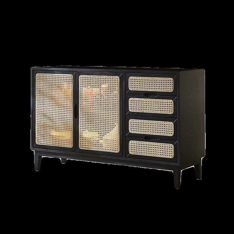 中古复古储物柜侘寂风实木藤编餐边柜现代简约收纳斗柜入户玄关柜