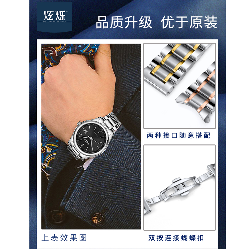 炫烁手表带钢带不锈钢男女精钢适用天梭浪琴卡西欧美度天王dw表带