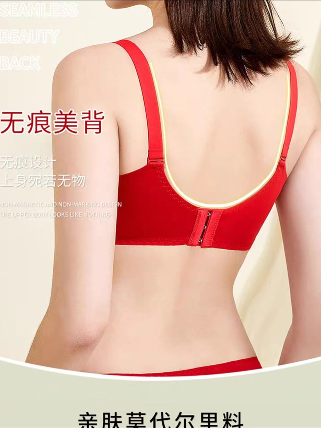 女生内衣文胸70码小胸聚拢无钢圈聚拢防走光抹胸式红色本命年新娘