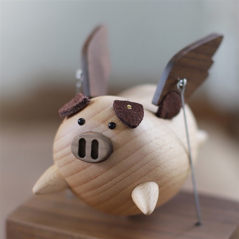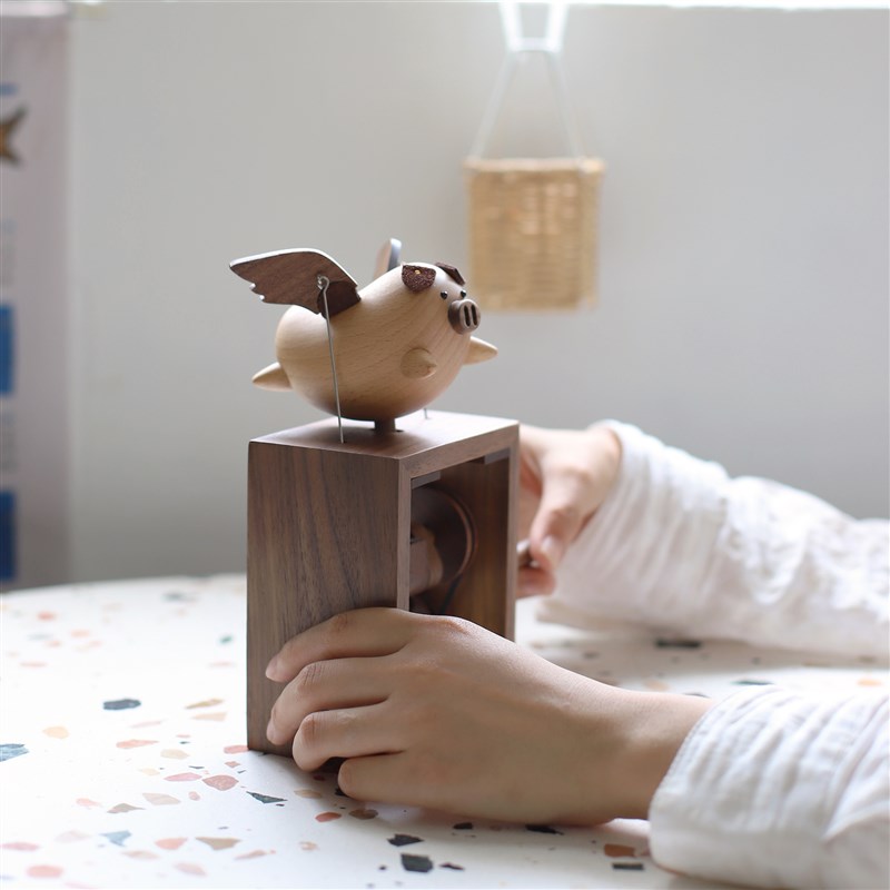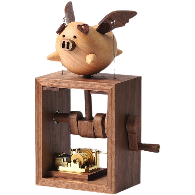 飞天小猪手摇木质八音盒音u乐盒创意生日礼物男朋友女生闺蜜情人