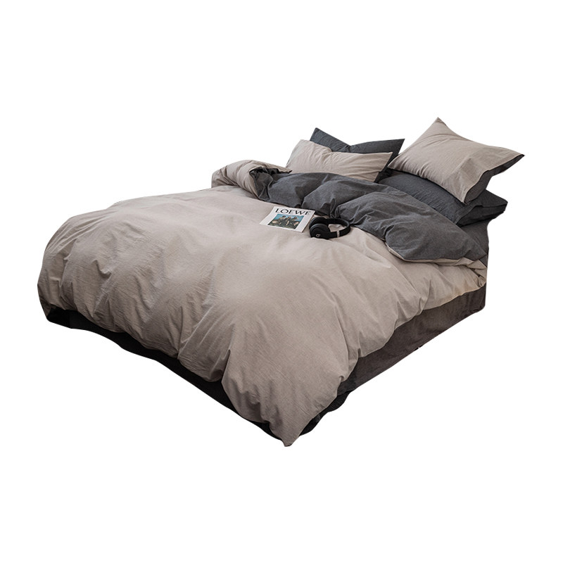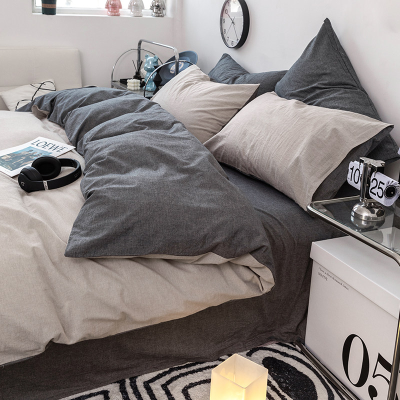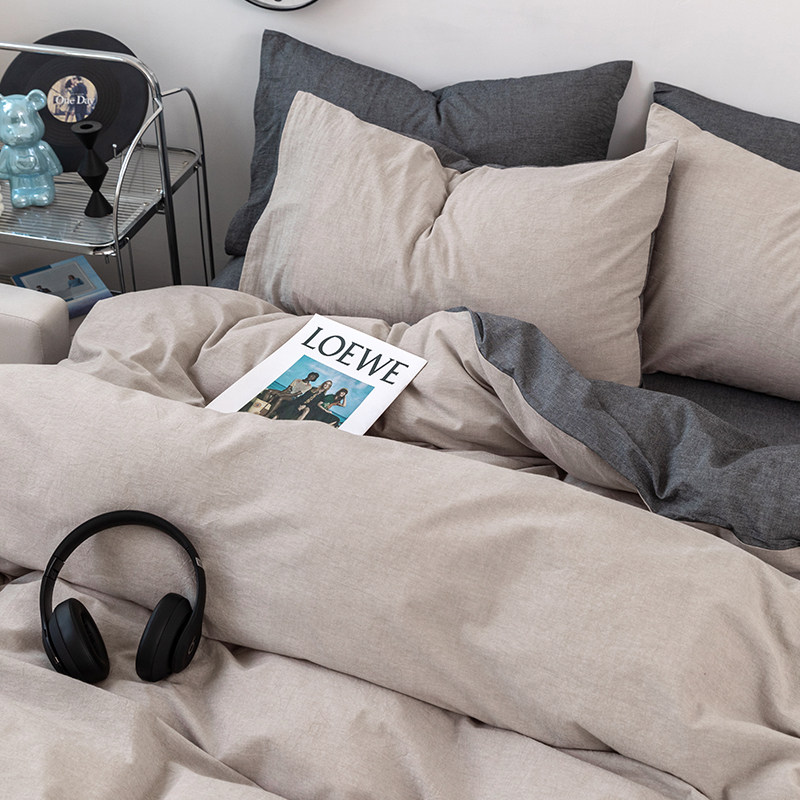 无印良品全棉可水洗素色床上四件套简约纯棉被套裸睡亲肤床上用品