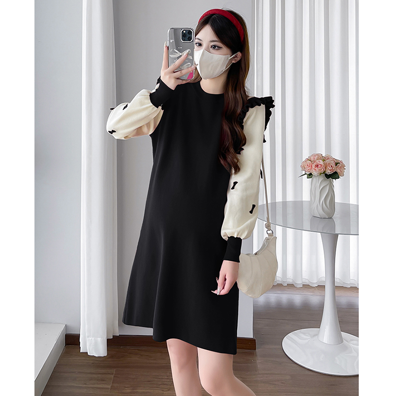 孕妇连衣裙2025新款秋冬针织毛衣假两件裙子过年红小个子中长款女