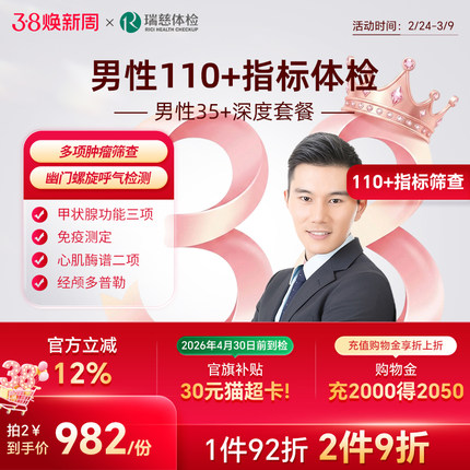 小红书同款--男性35+深度体检套餐 甲状腺胃幽门肿瘤职场中青年