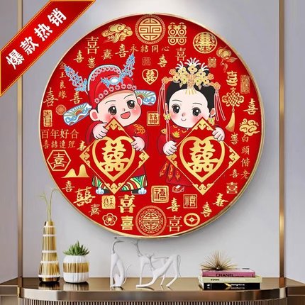 2024满钻新款钻石画百喜图点砖十字绣结婚房客厅卧室钻石绣自粘画