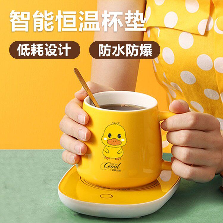 小黄鸭暖暖杯55度智能恒温杯办公室牛奶加热杯垫马克杯礼盒装定制