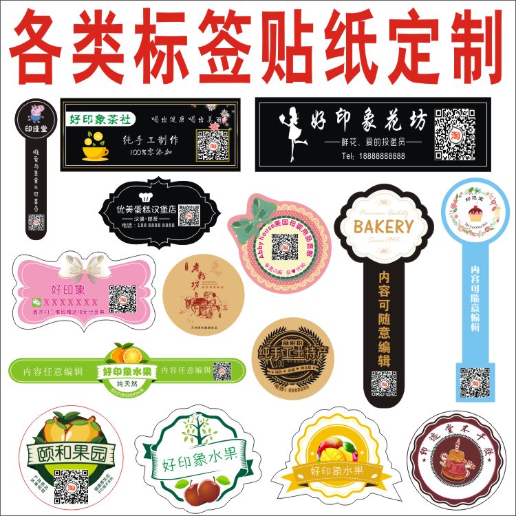 不干胶贴纸定制定做微信二维码logo透明pvc包装卷筒标签广告印刷
