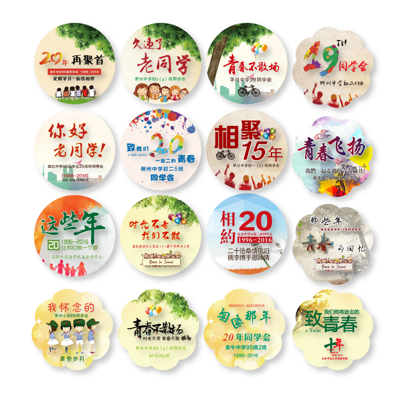 同学会聚会贴纸年会活动派对装饰贴纸臂贴胸贴LOGO徽章贴纸礼物贴
