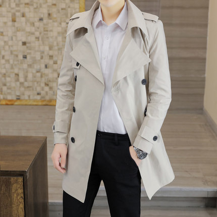 双排扣风衣外套春秋季男士薄款英伦风中长款大衣青年痞帅时尚秋装