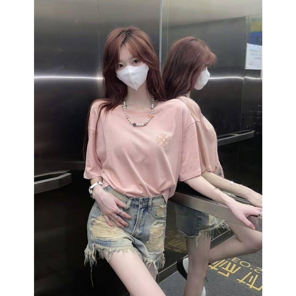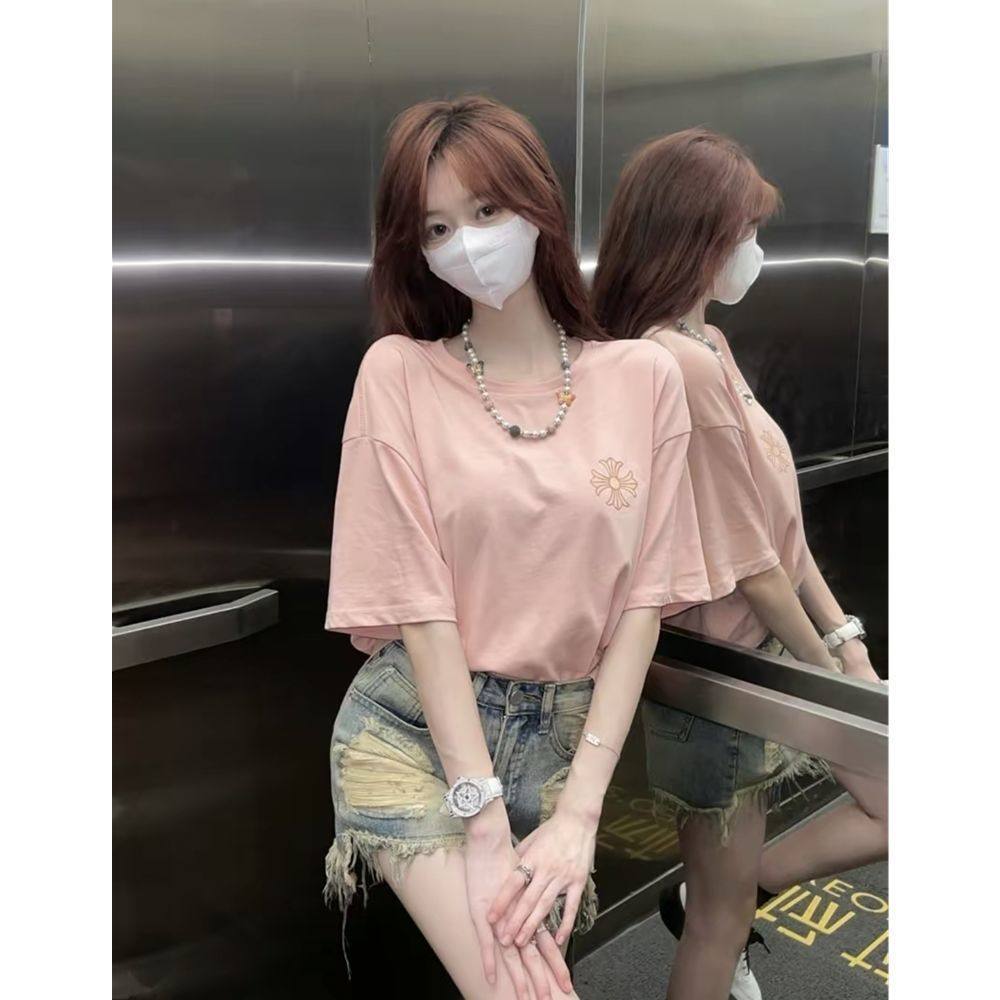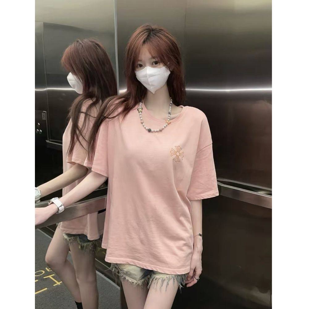 胖mm粉色印花大码短袖T恤女 夏季新款宽松慵懒风oversisz半袖上衣