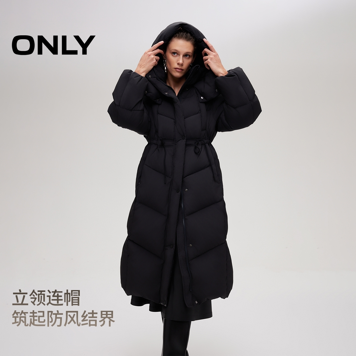 ONLY2025冬季新款90白鸭绒防风立领抗静电连帽宽松长款羽绒服女