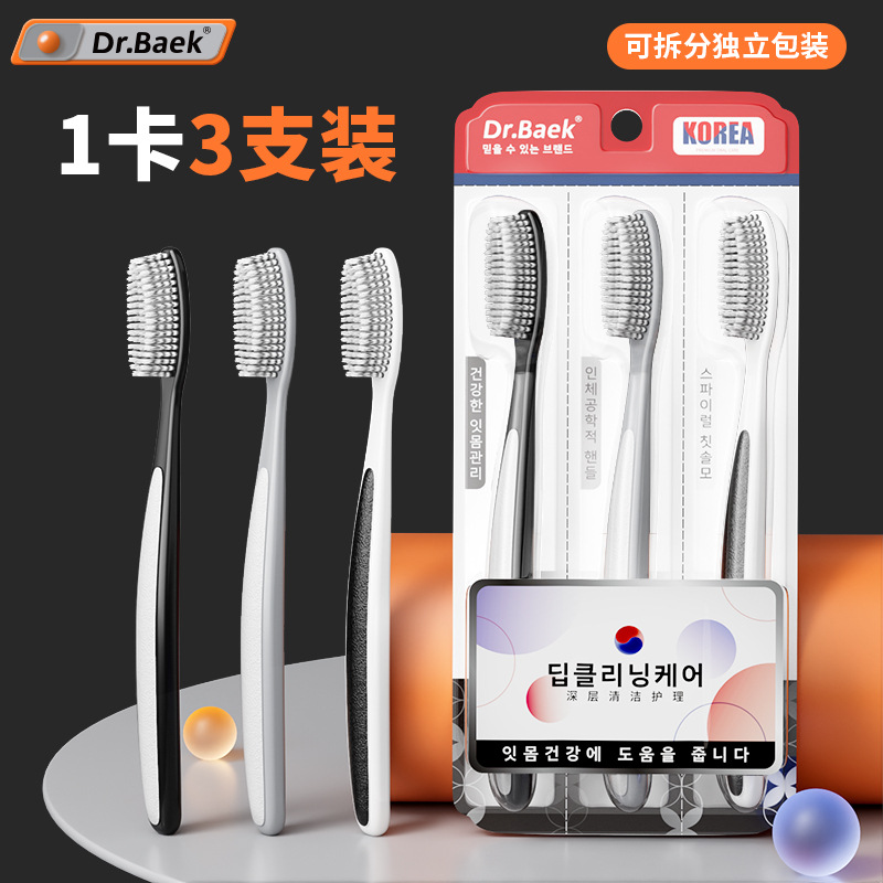 韩国正品品牌长头软毛牙刷护龈成人情侣通用加长刷头三支装牙刷
