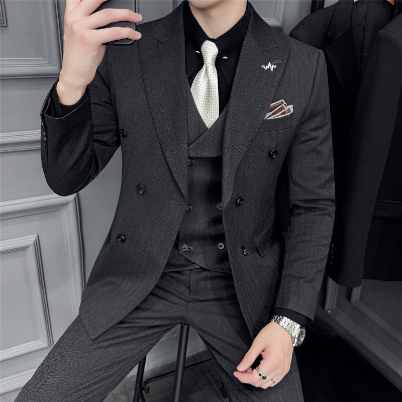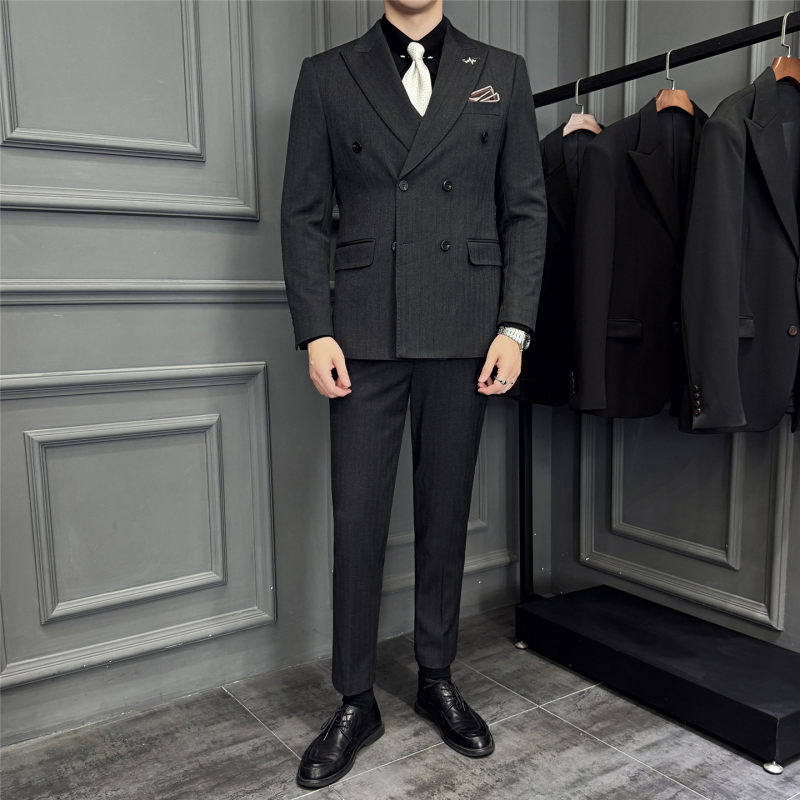 秋冬双排扣羊毛西装男套装加厚韩版修身商务职业正装新郎结婚礼服