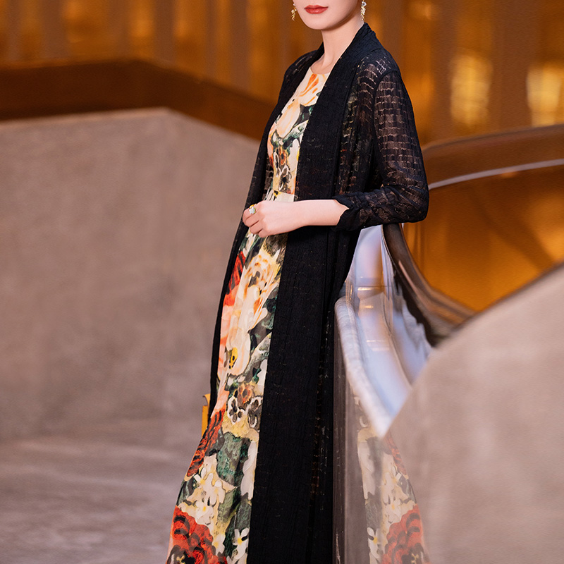 首尚格释2025夏季新款时尚气质雪纺印花裙子圆领收腰大摆连衣裙女