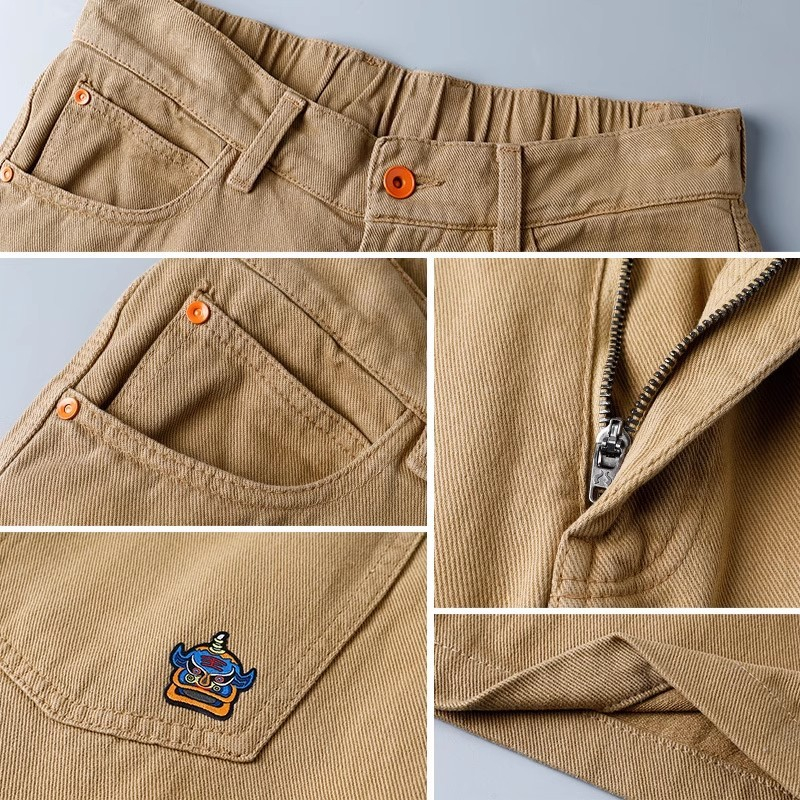 直筒休闲裤男夏季纯棉美式复古男士裤子春秋款宽松卡其色长裤子男