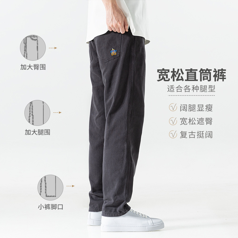 直筒休闲裤男纯棉美式复古男裤子