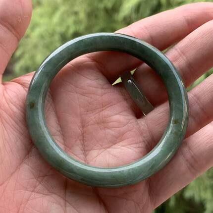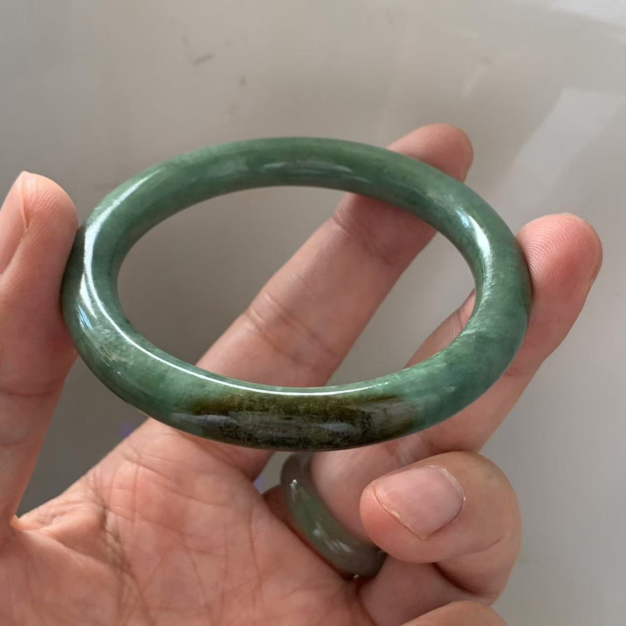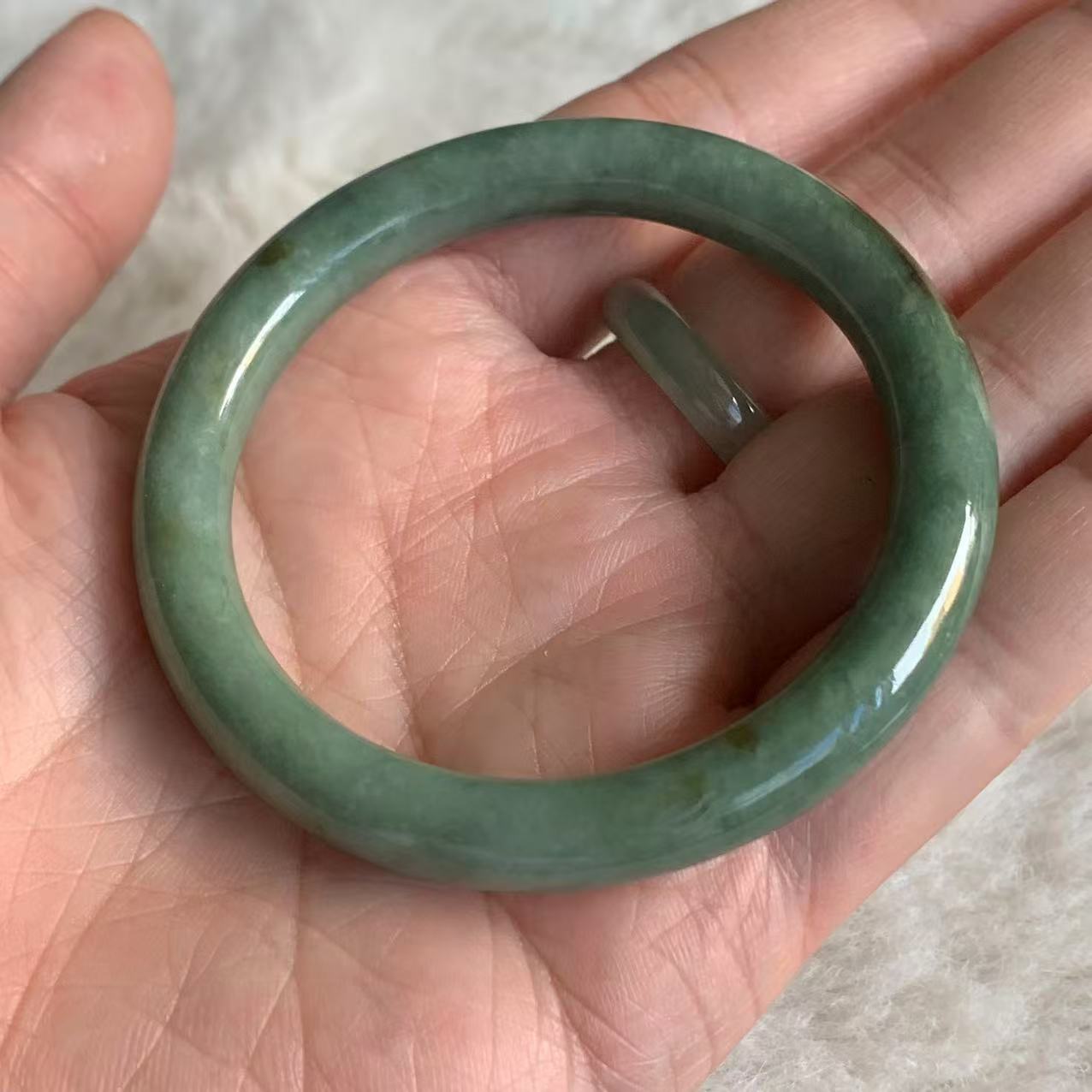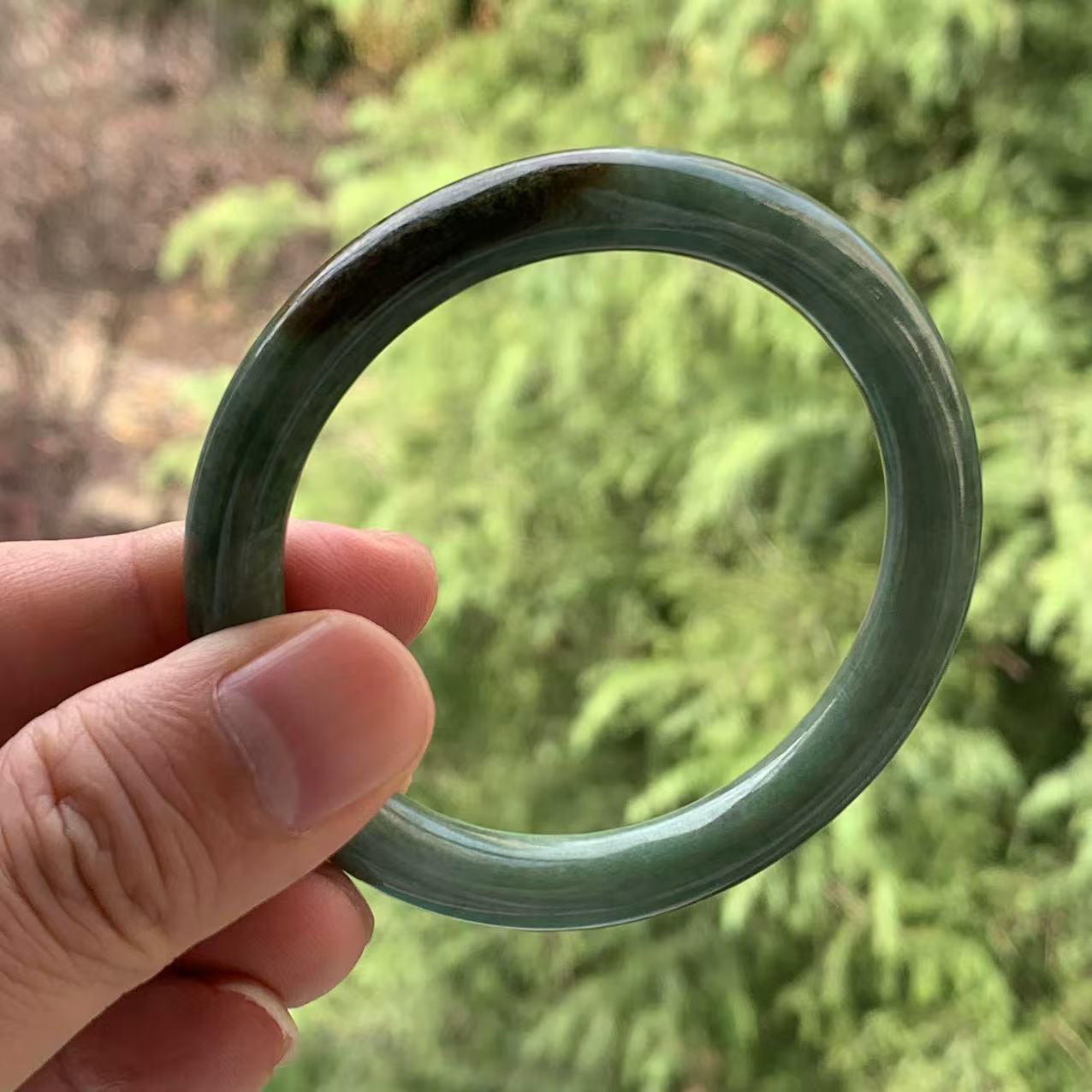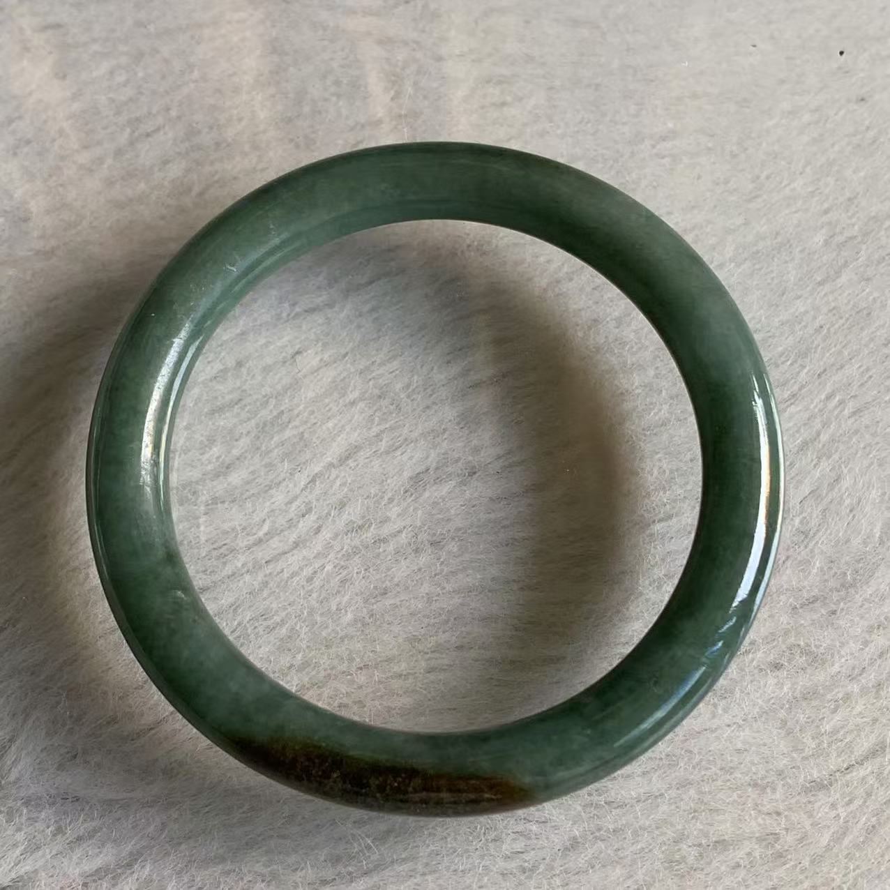 缅甸天然A货翡翠正圈手镯油青深绿色飘黄翡手镯51.5mm一物一证
