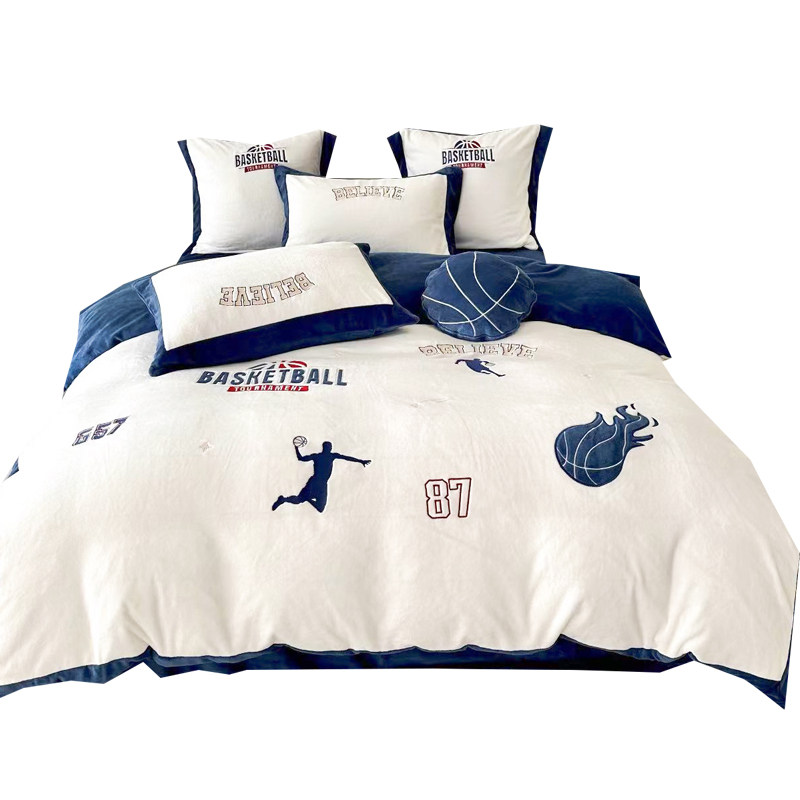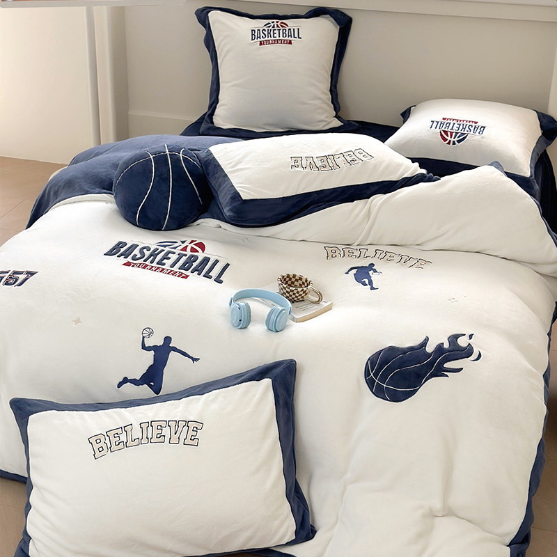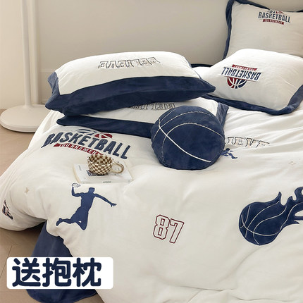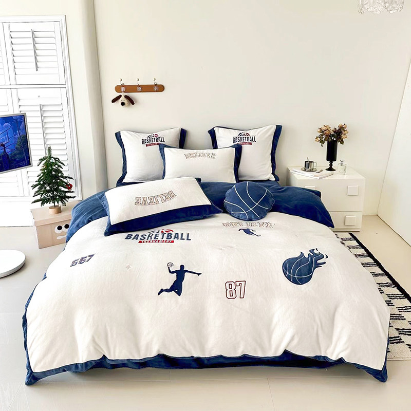 男孩冬季加厚保暖牛奶绒四件套冬款珊瑚绒儿童卡通篮球床上用品
