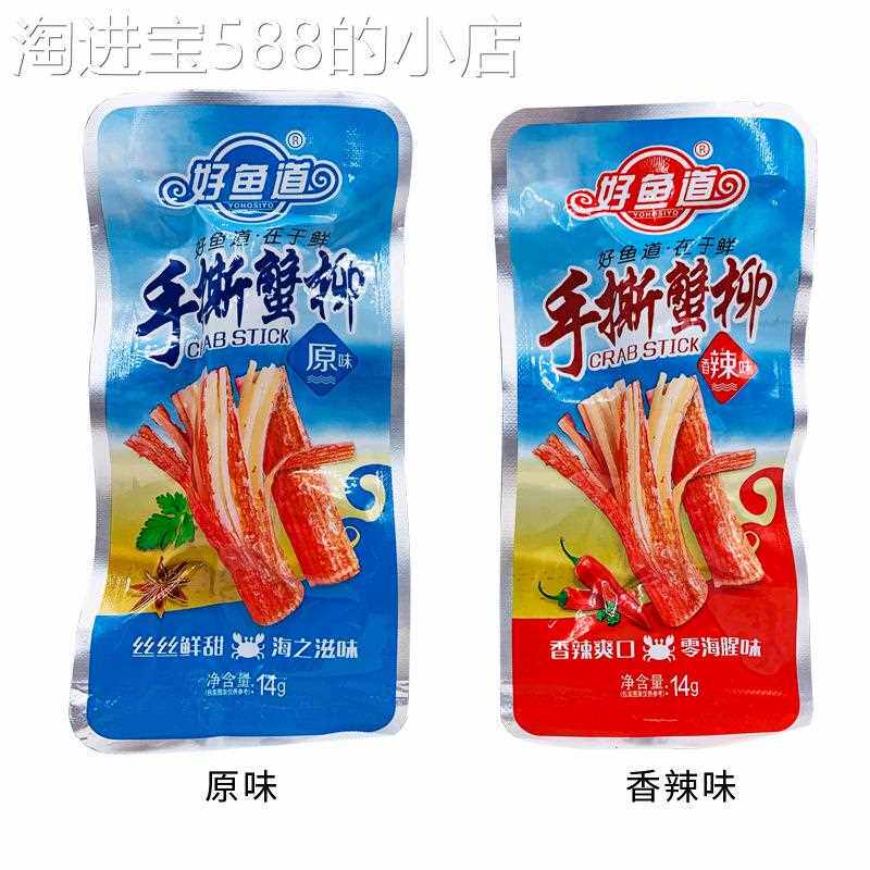 手撕蟹柳棒即食网红休闲小零食品小吃辣味蟹肉原味海味香辣