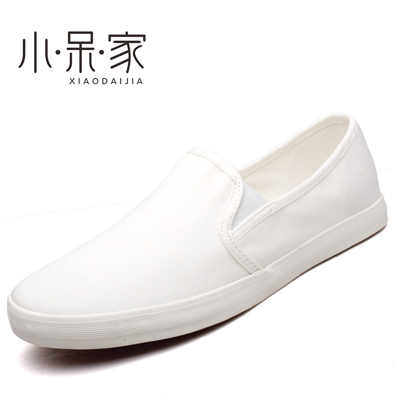 小呆家白色帆布鞋男夏季一脚蹬懒人鞋男布鞋平底鞋舒适小白鞋男
