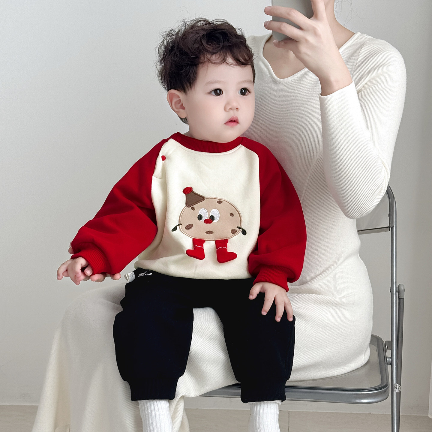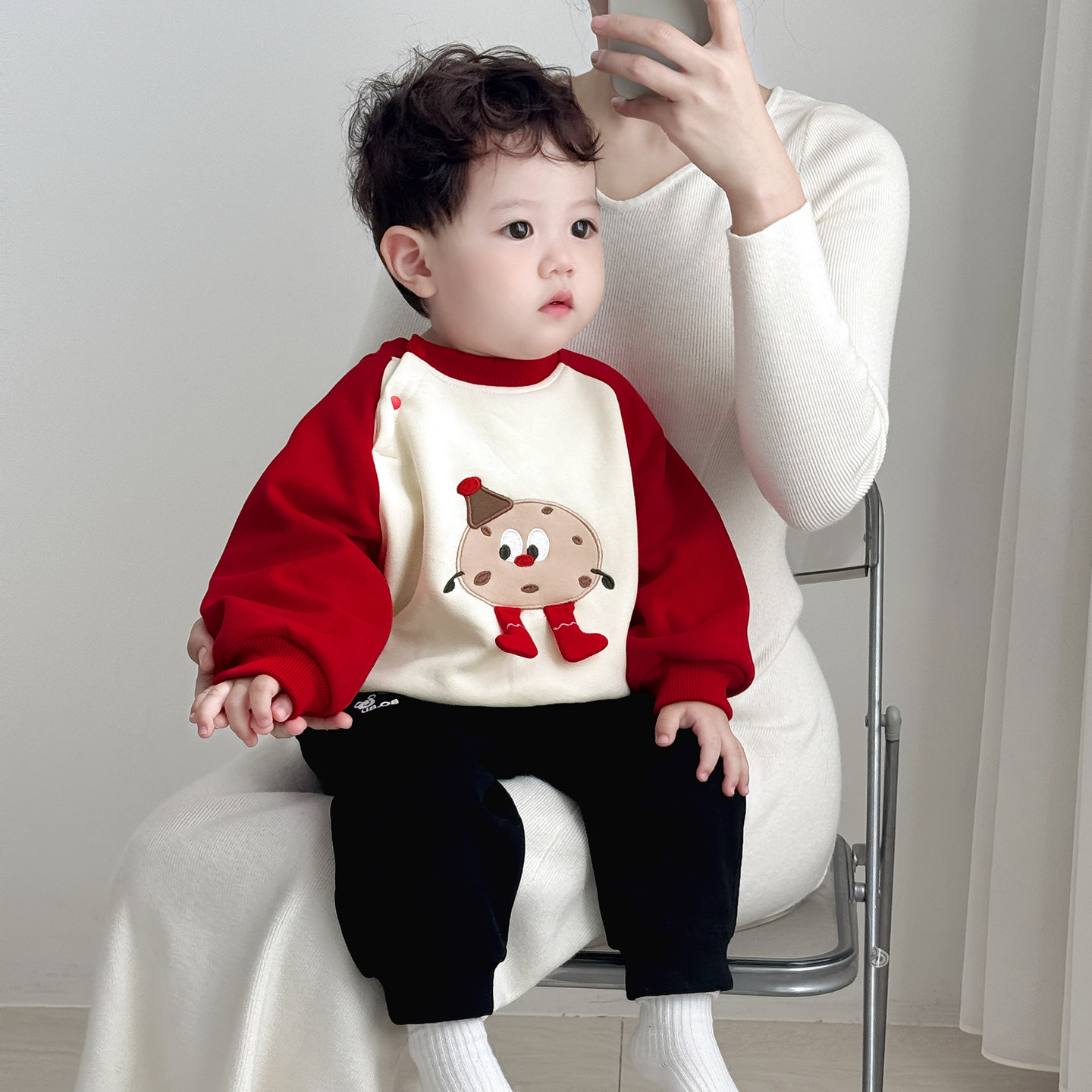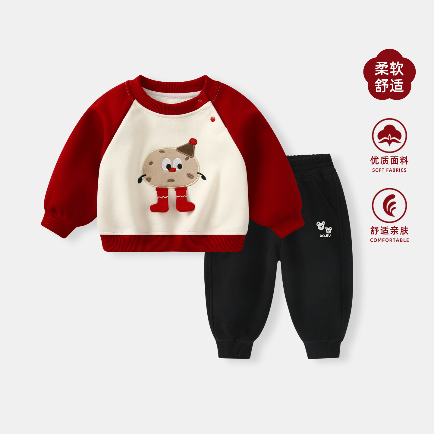 婴儿分体套装秋冬新款男宝宝红色加厚两件套冬装男童拜年卫衣儿童