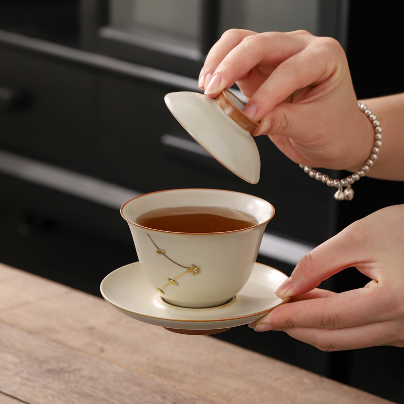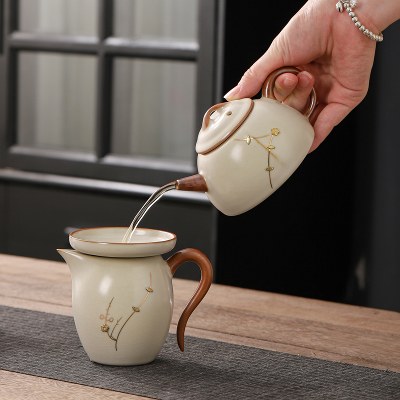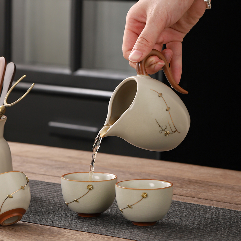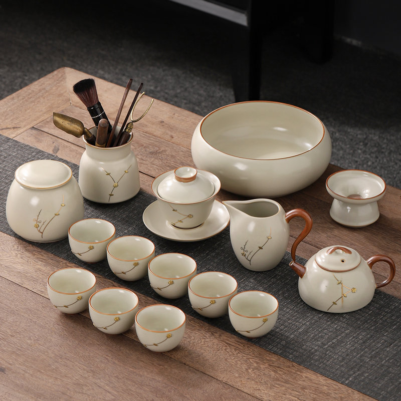 汝窑开片锔钉茶具套装2025新款功夫茶壶盖碗茶杯办公送礼高档整套