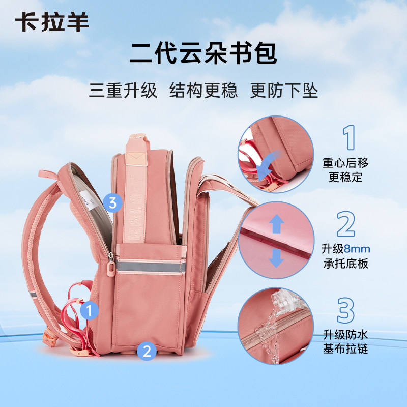 卡拉羊小学生1-4年级云朵书包大容量背包男轻便减负双肩包女 新