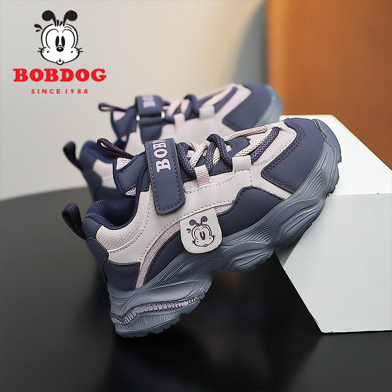 巴布豆春秋款儿童老爹鞋皮面防水女童魔术贴软底休闲鞋女童运动鞋