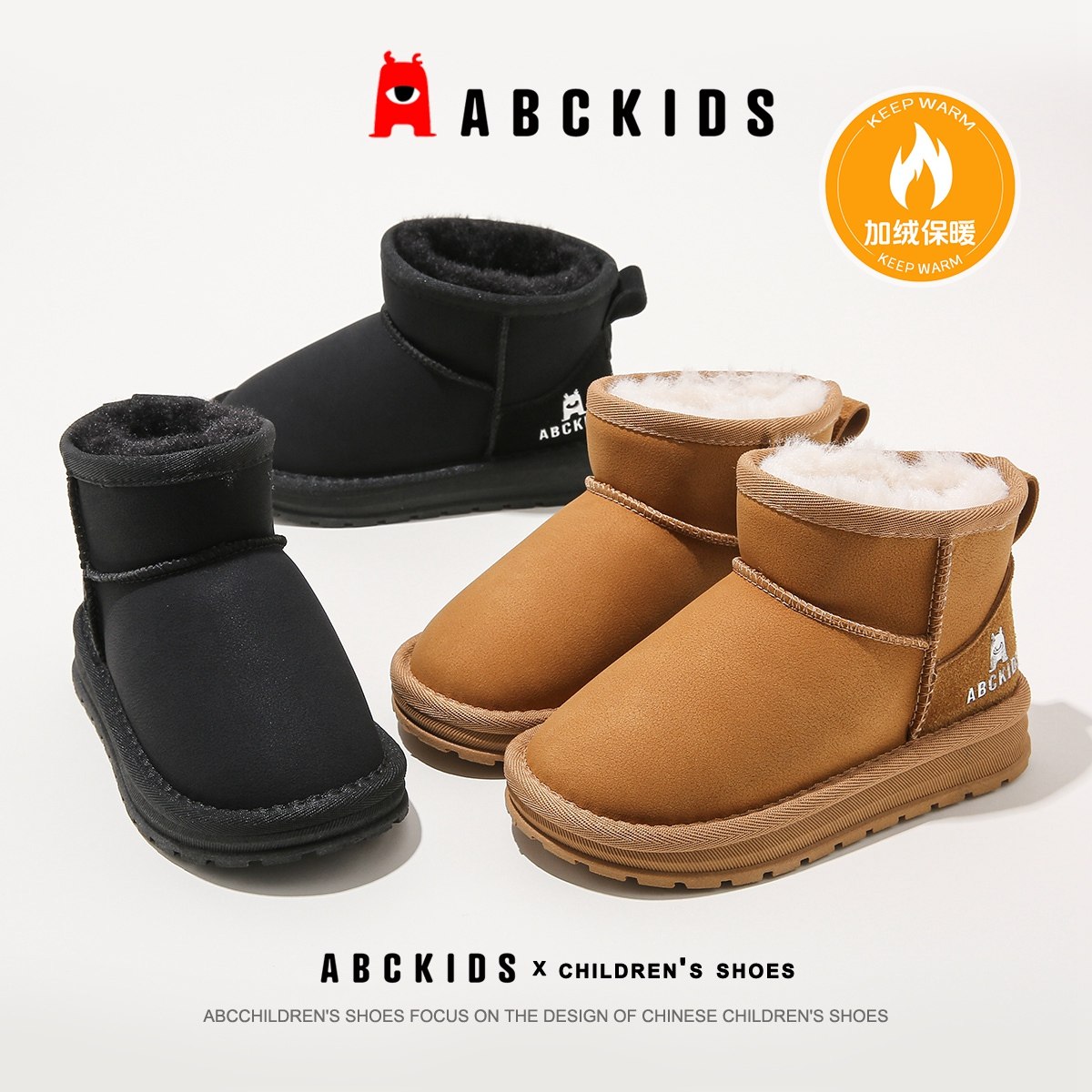 ABCkids童鞋男女童雪地靴2024冬季新款儿童棉鞋加绒加厚女孩棉靴