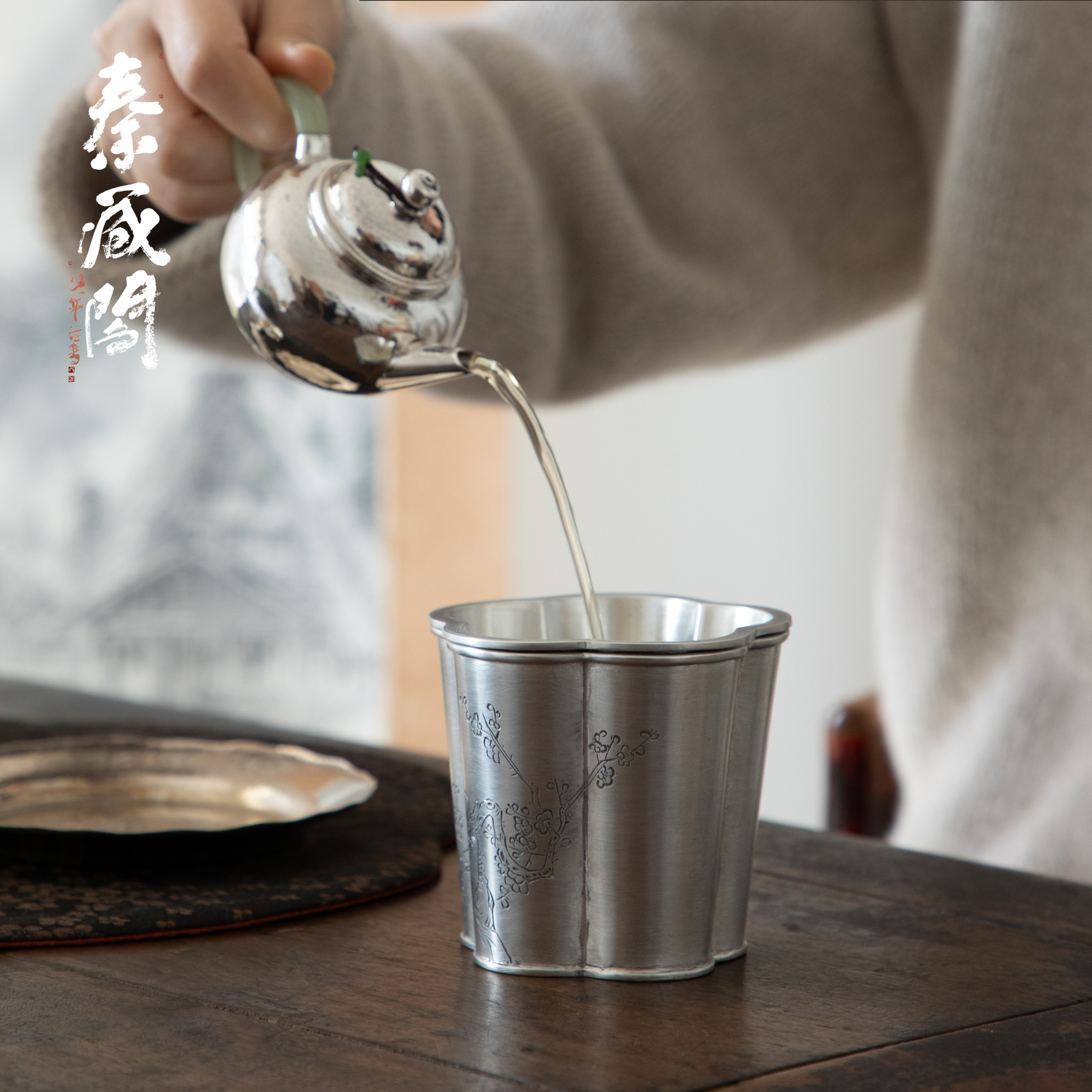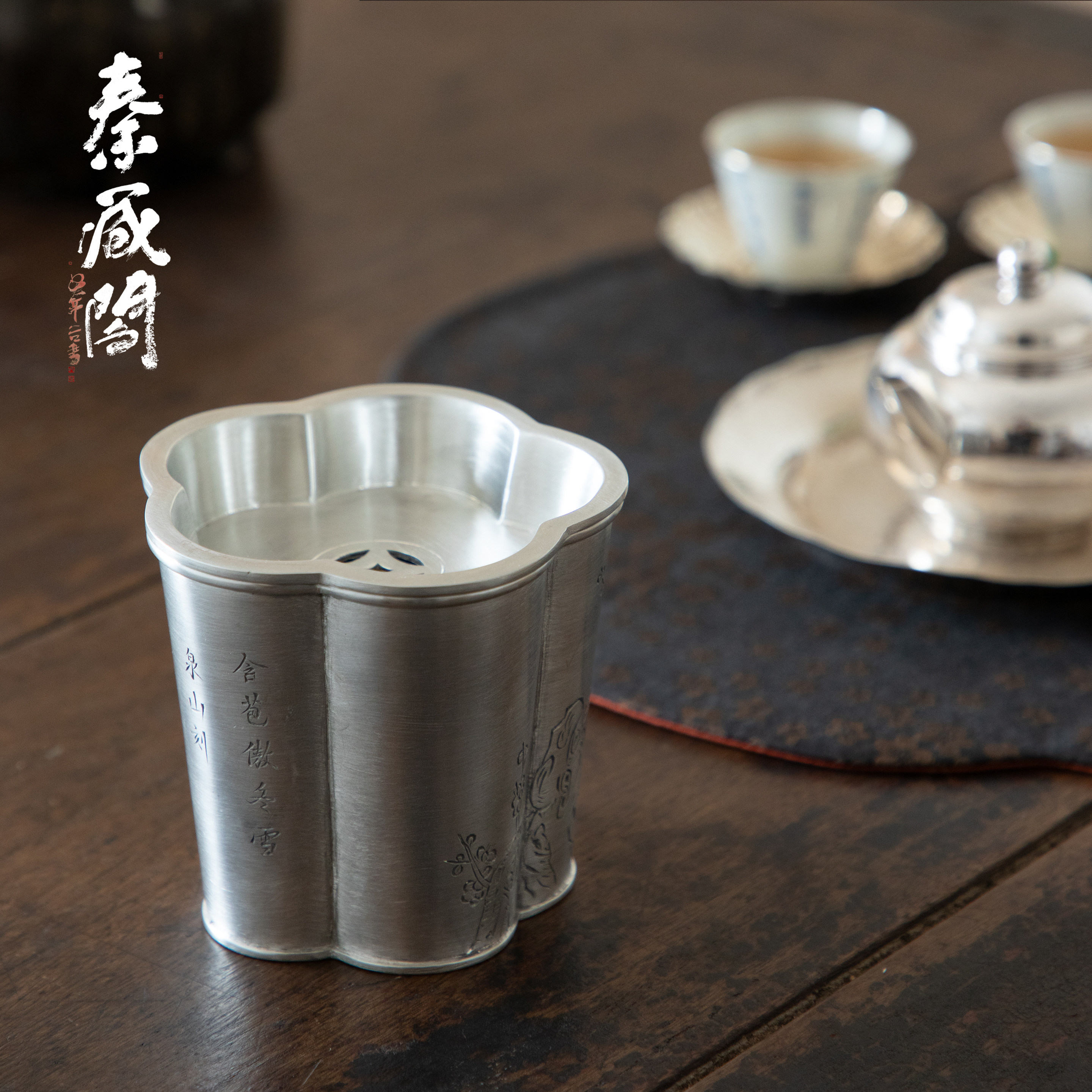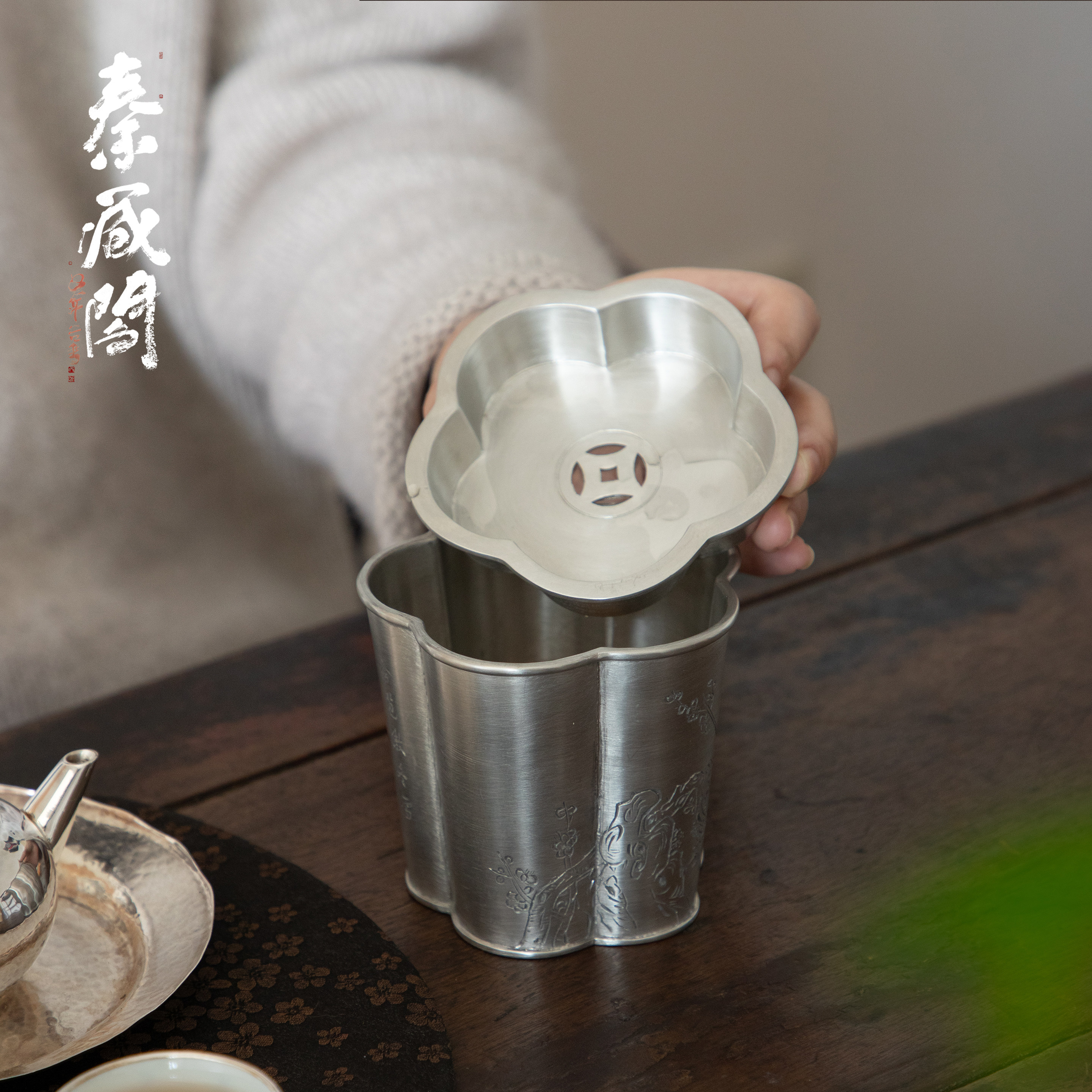 秦藏阁 寒梅纯锡壶承手工干泡台储水式茶海美学复古茶具配件250ml