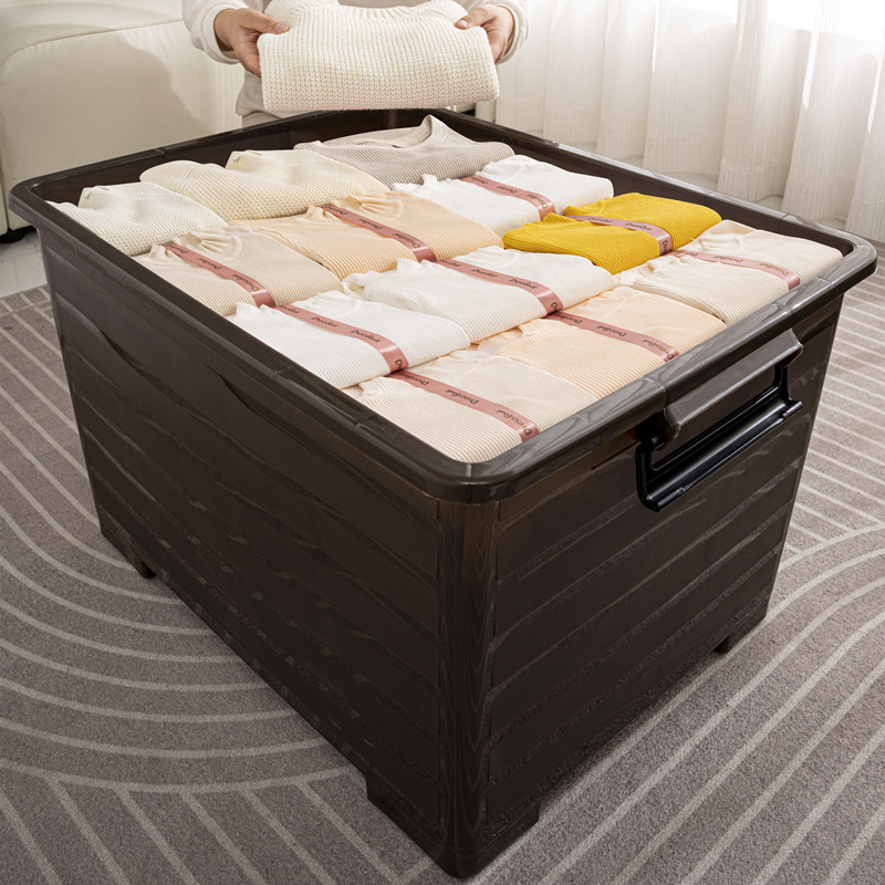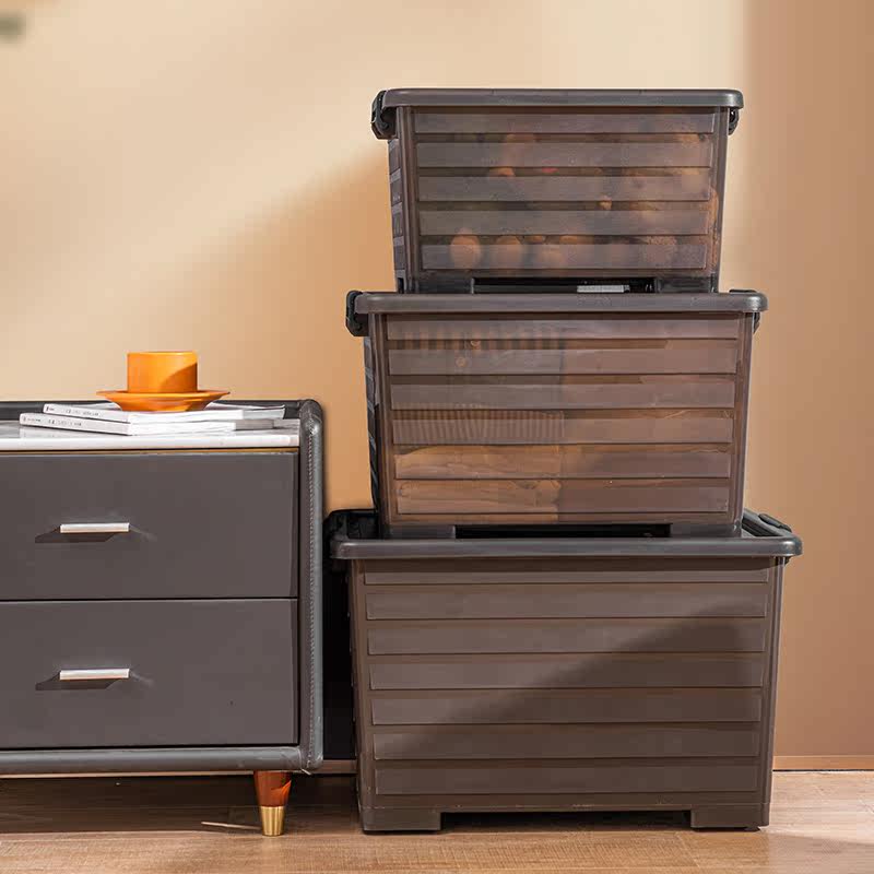 收纳箱带滑轮家用加厚透明塑料箱子大号整理箱衣服玩具零食储物盒