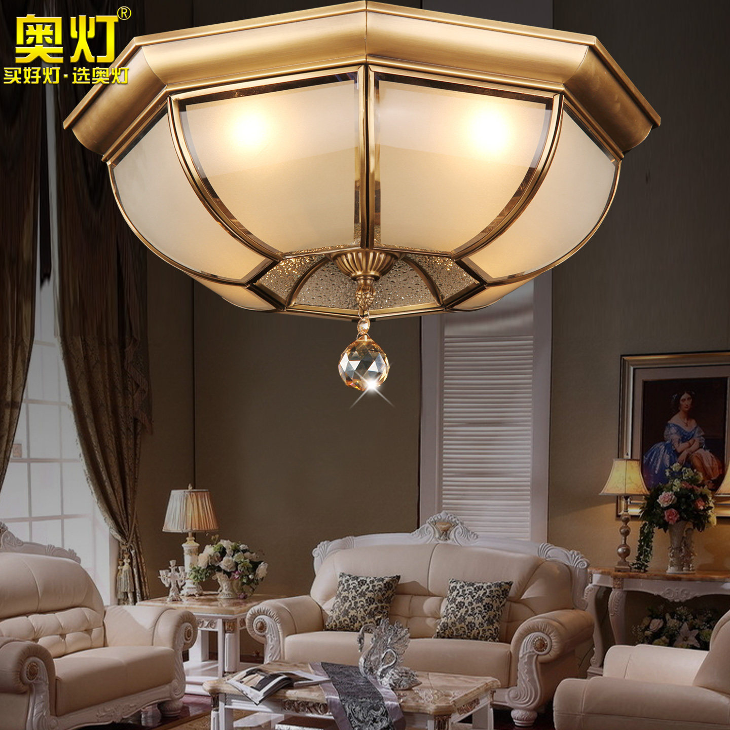 欧式美式客厅led全铜吸顶灯
