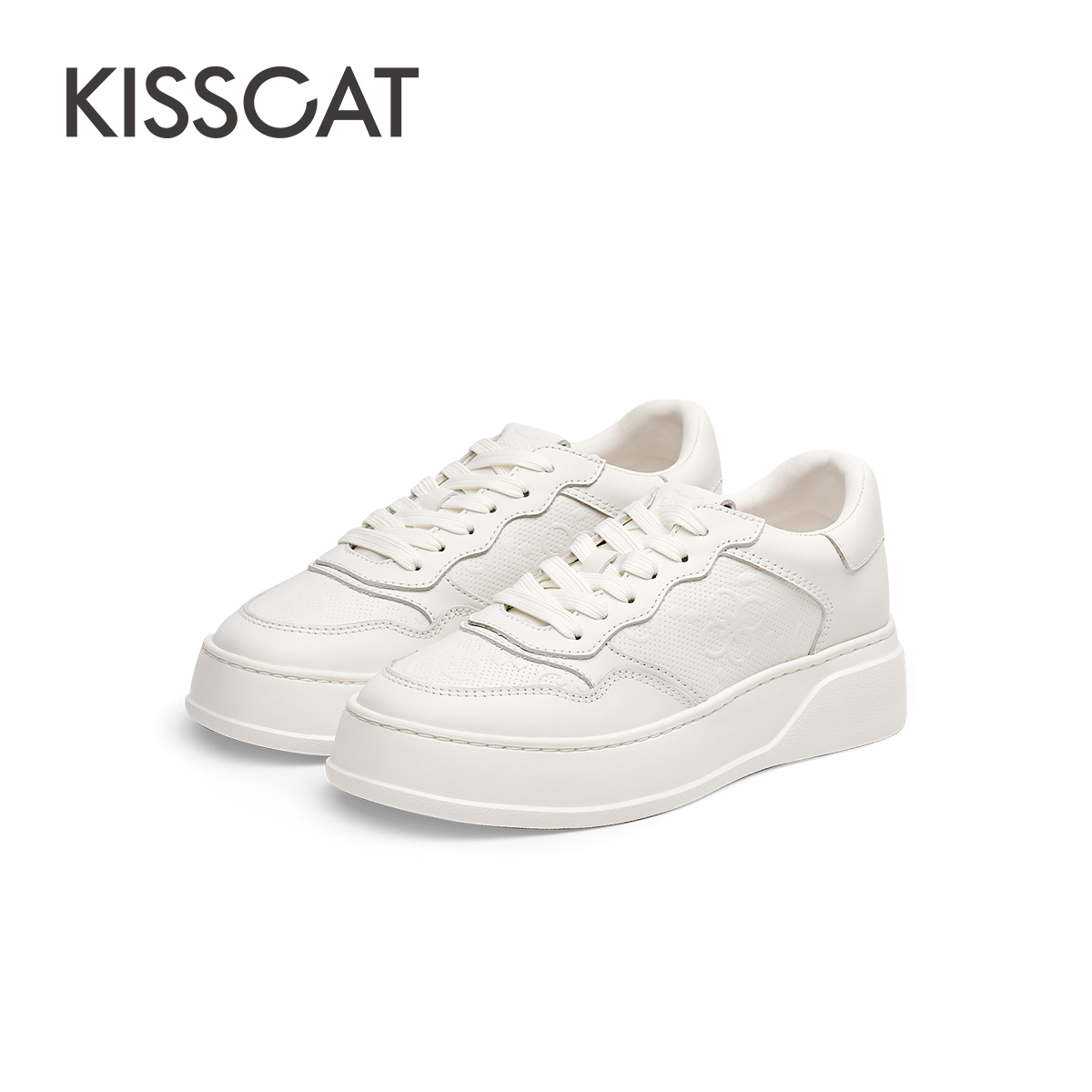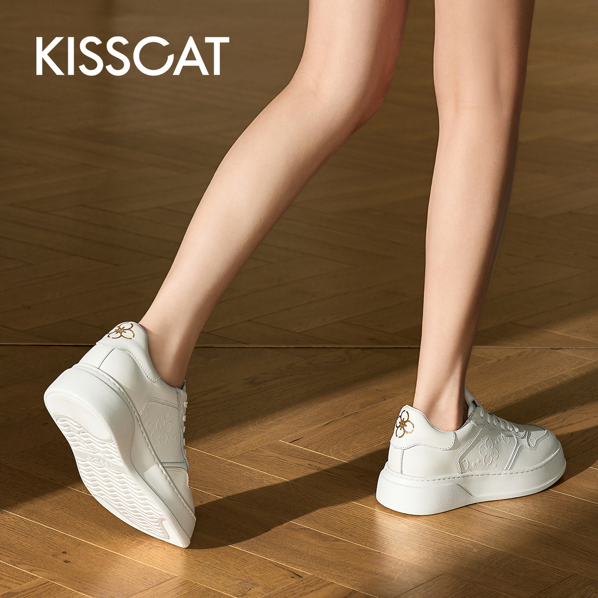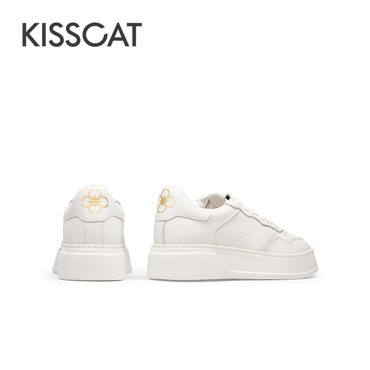 KISSCAT接吻猫新款增高厚底小白鞋系带透气休闲鞋轻便运动鞋女