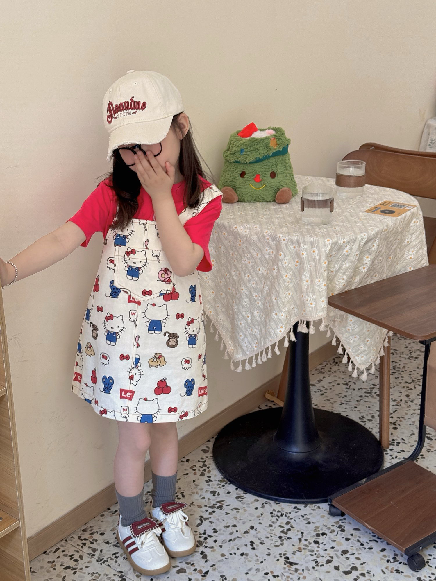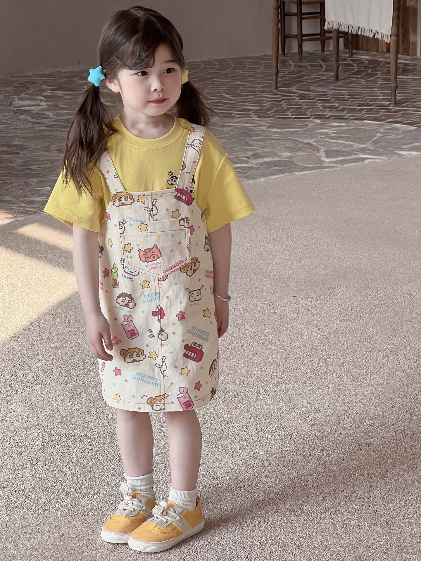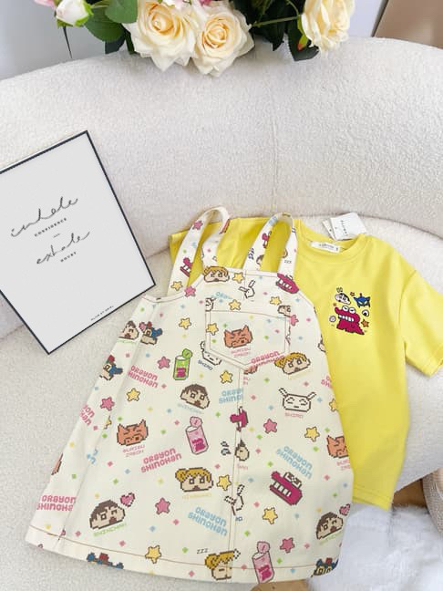韩版夏款女童宝宝凯蒂猫小新背带裙T恤套装萌趣可爱卡通两件套