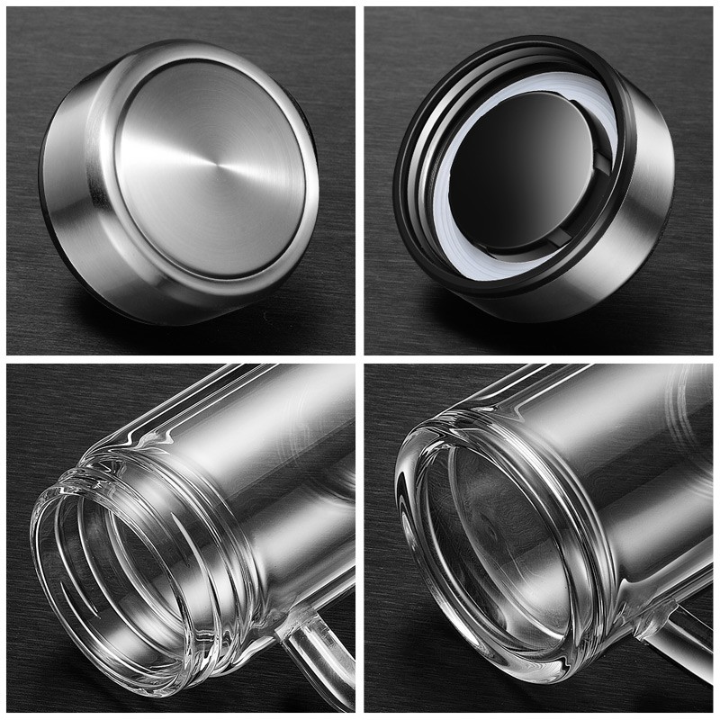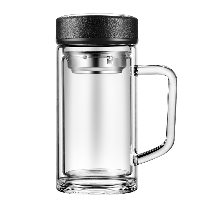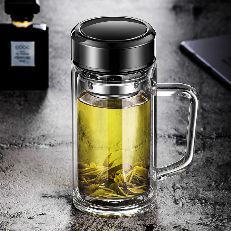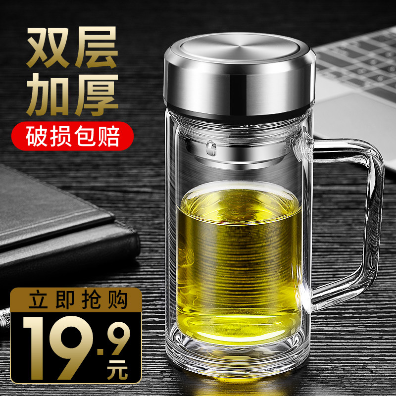 双层玻璃杯男士带把手办公茶水分离泡茶杯带盖大容量水杯家用杯子