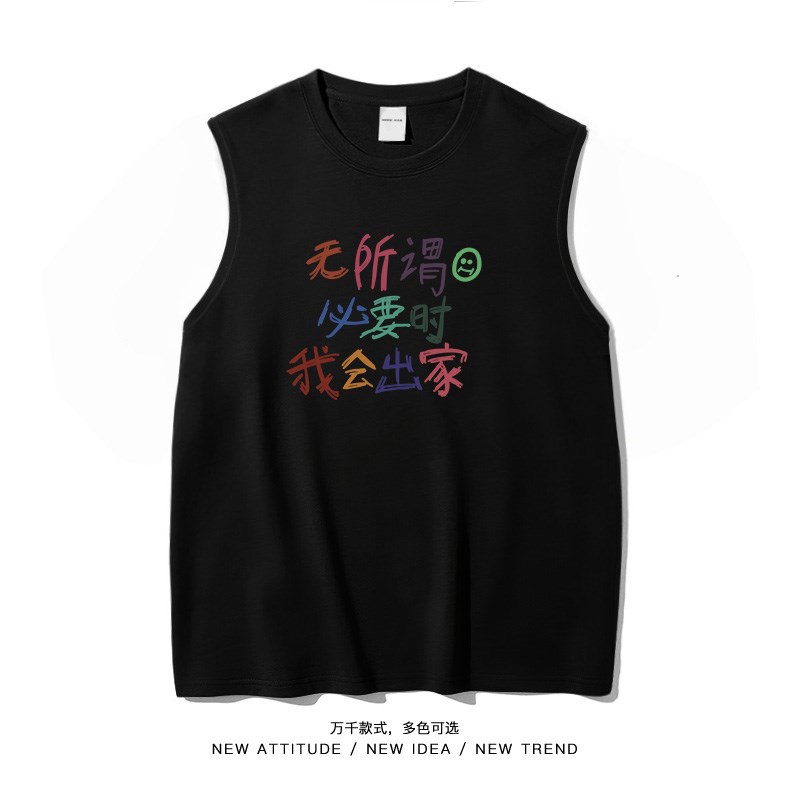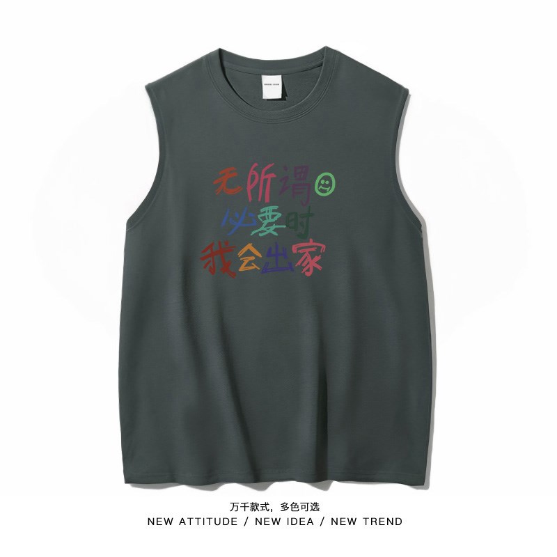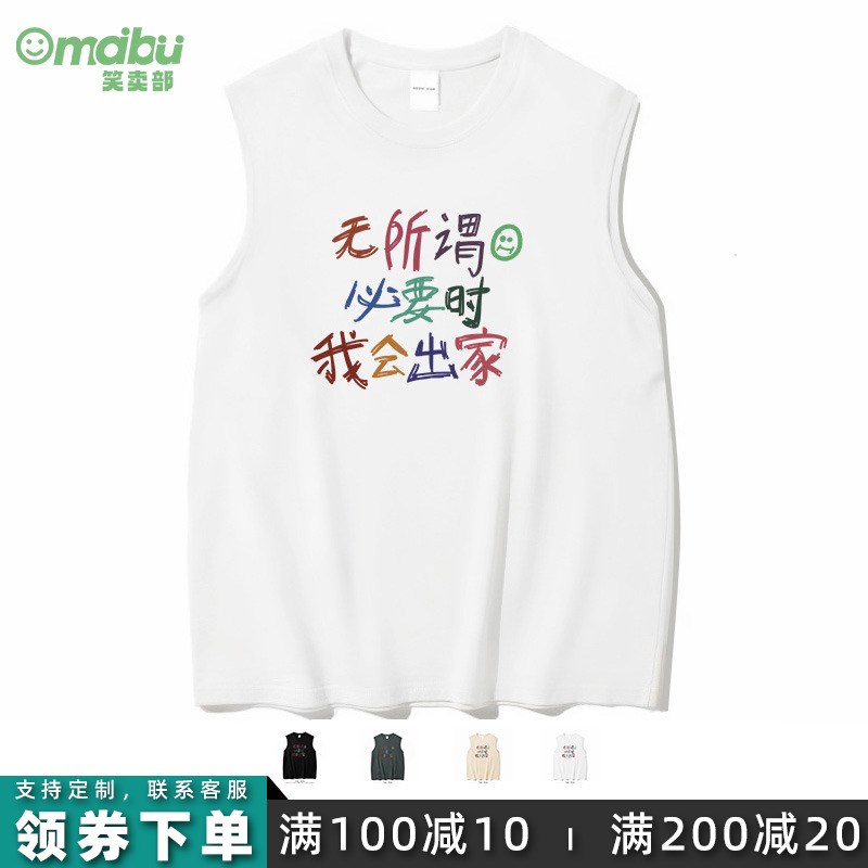 笑卖部/无所谓我会出家搞笑宽肩背心男女纯棉夏季宽松无袖t恤大码