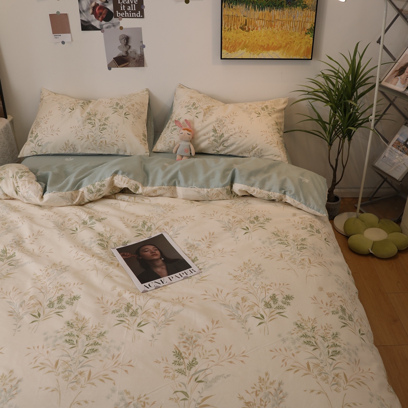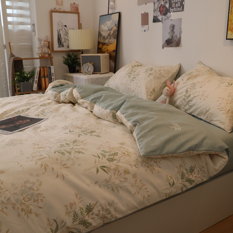 ins素雅美式田园风花草文艺床上四件套E全棉纯棉被套1.5m1.8米床