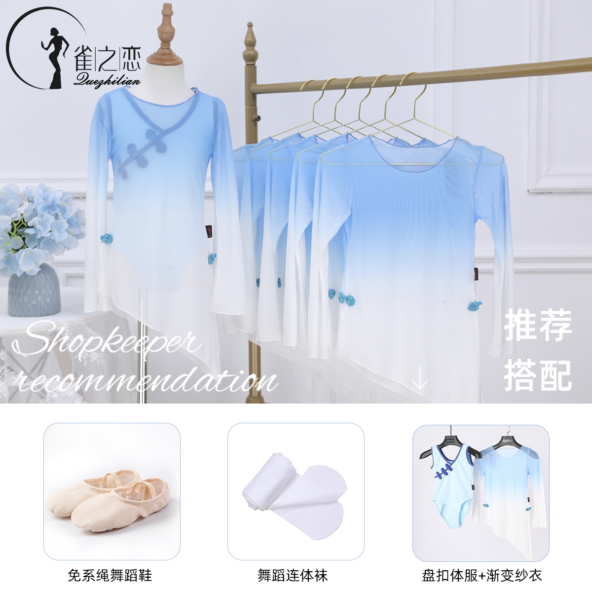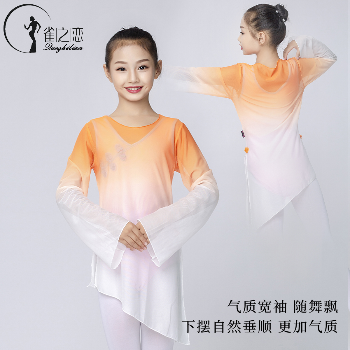 舞蹈服儿童女秋季古典舞长袖纱衣中国舞芭蕾舞形体服练功服基训服