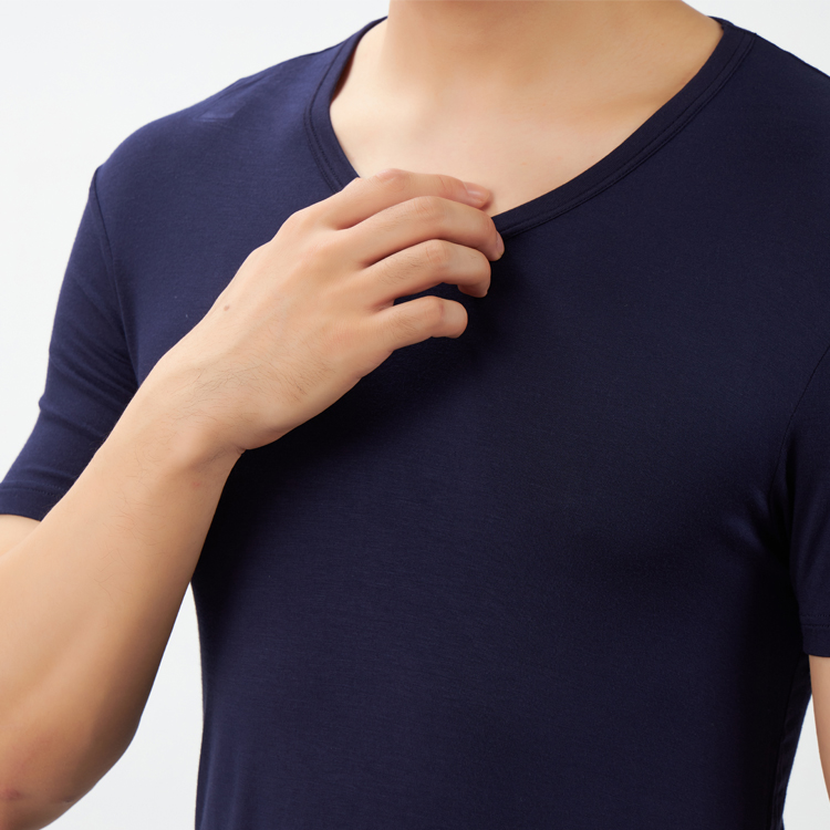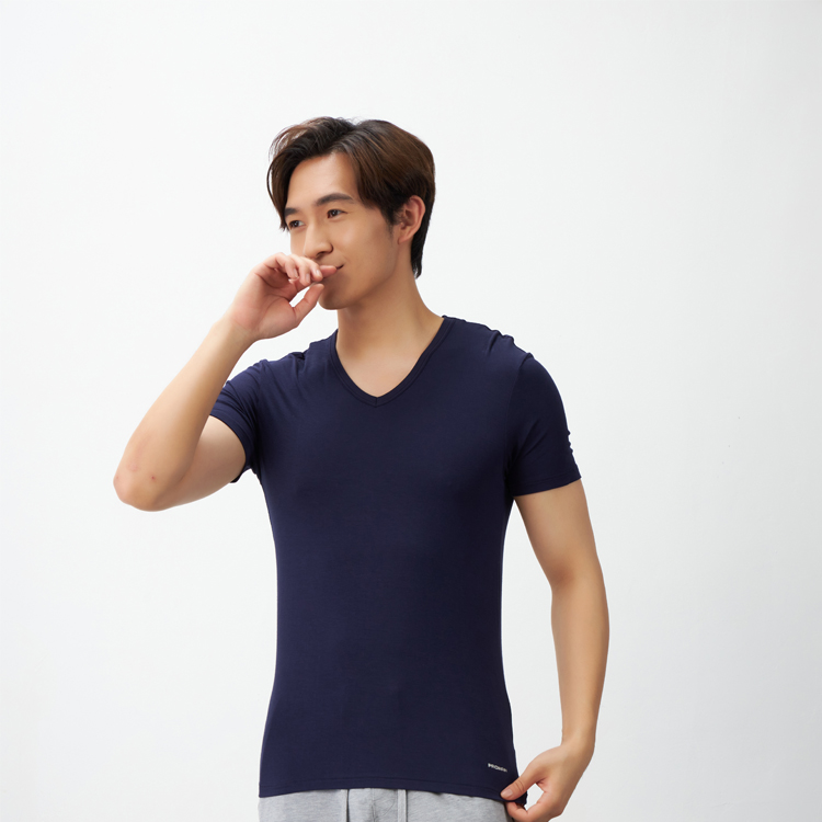 PROMAN/豪门男士纯棉罗纹V领短袖衫夏季打底T恤V领大码舒适中老年
