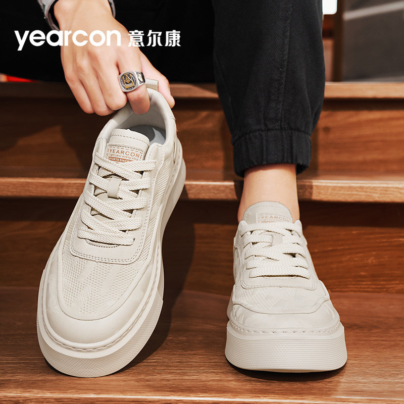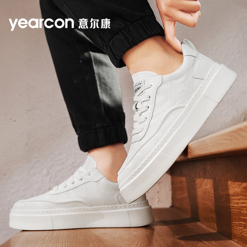 意尔康男鞋厚底增高小白鞋子男秋季2025新款潮流高级感纯白色板鞋