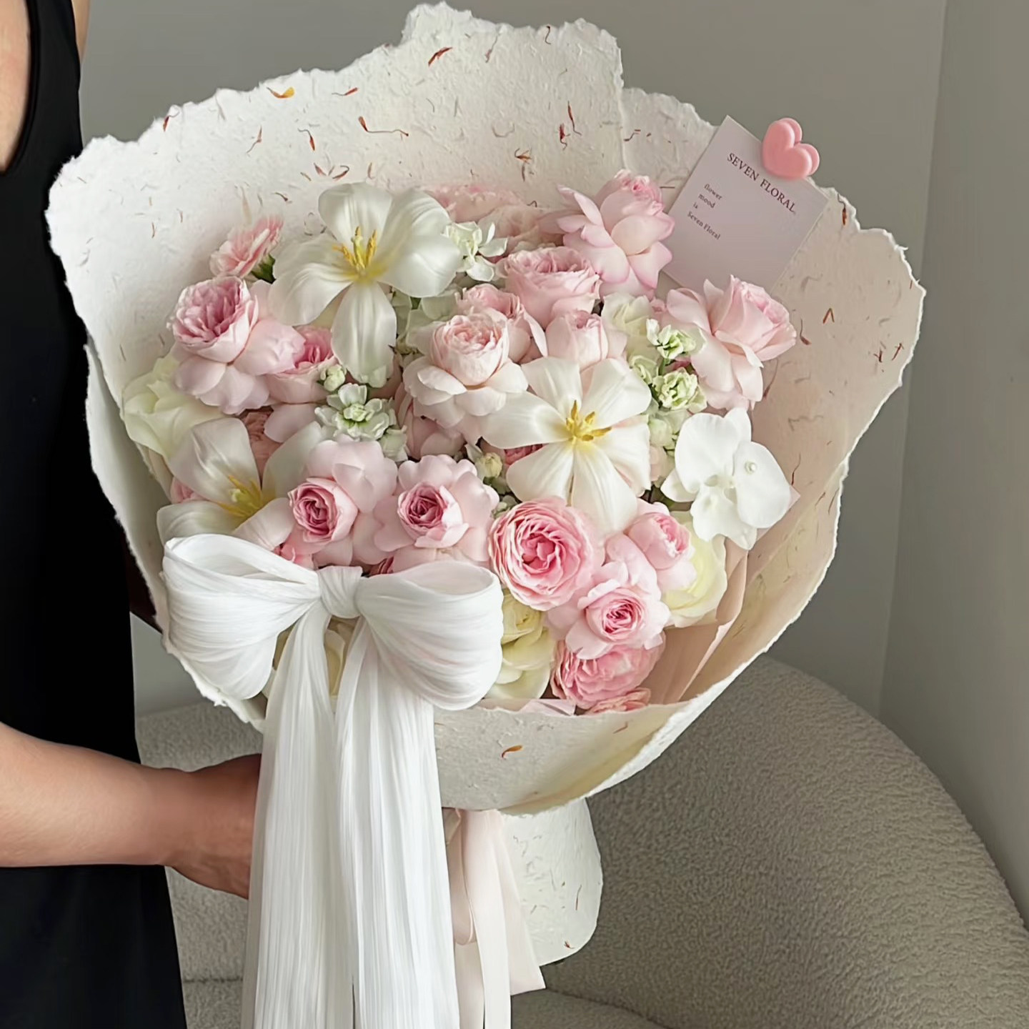 星语 法式蝴蝶结珠光纱diy雪缎涟漪布料包花纱氛围感鲜花包装材料